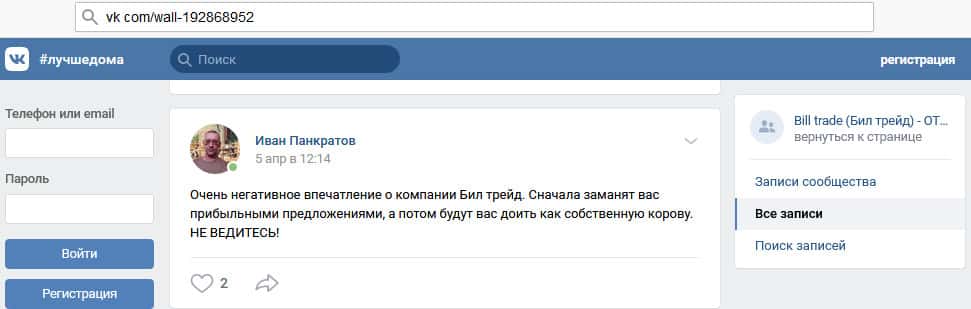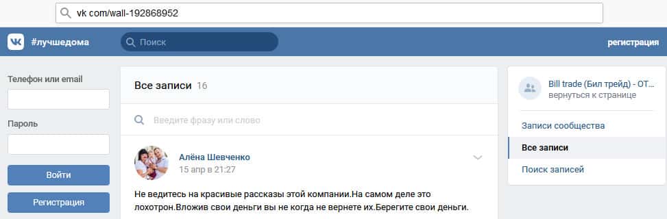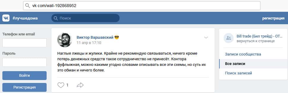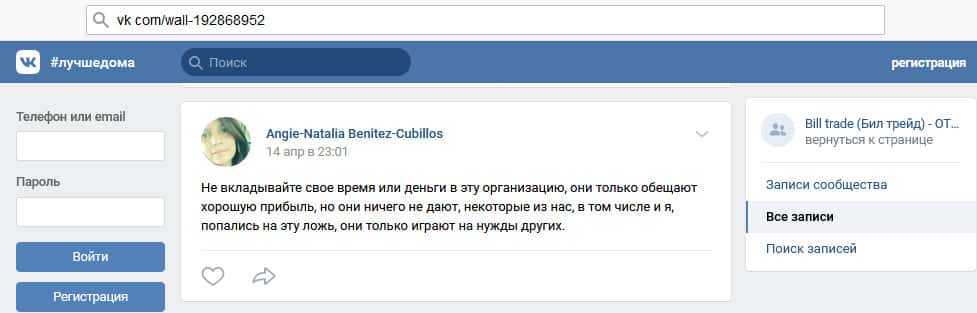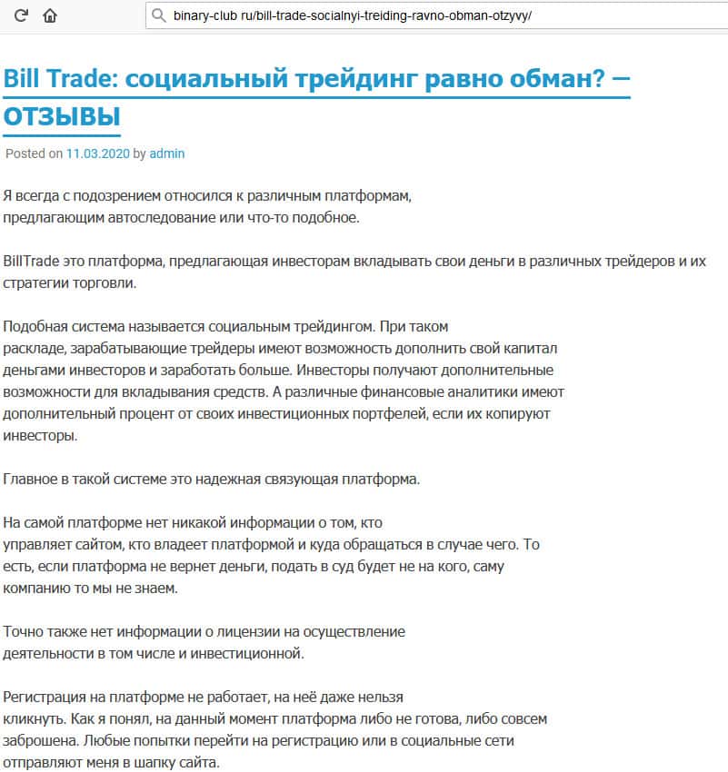 Что думает автор статьи о мошеннической организации Билл Трейд?