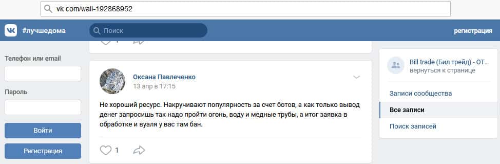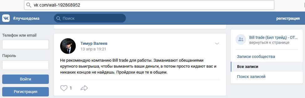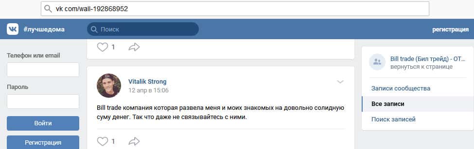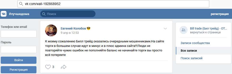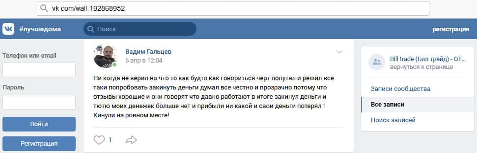 - Что можно сказать о сайте мошенников Билл Трейд?