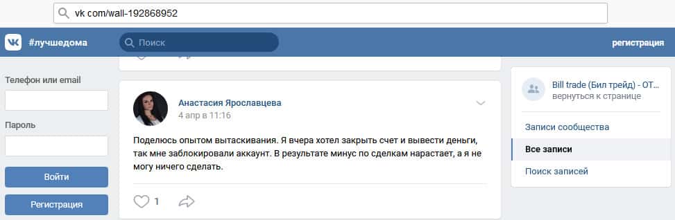- Клиенту Билл Трейд просто заблокировали аккаунт после того, как он решил вывести свои деньги