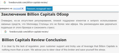 - Очередной информационный портал предупреждает что BillionCapitals без лицензии