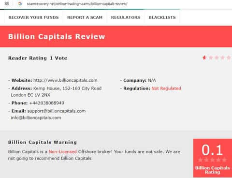 Еще один интернет-портал не рекомендует Billion Capitals
