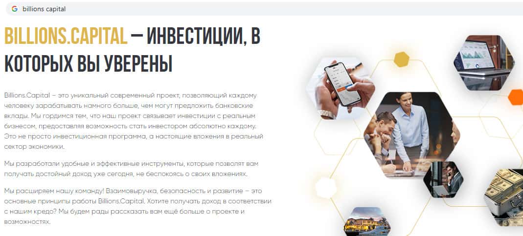 - Обзор официального сайта инвест-лохотрона Billions Capital