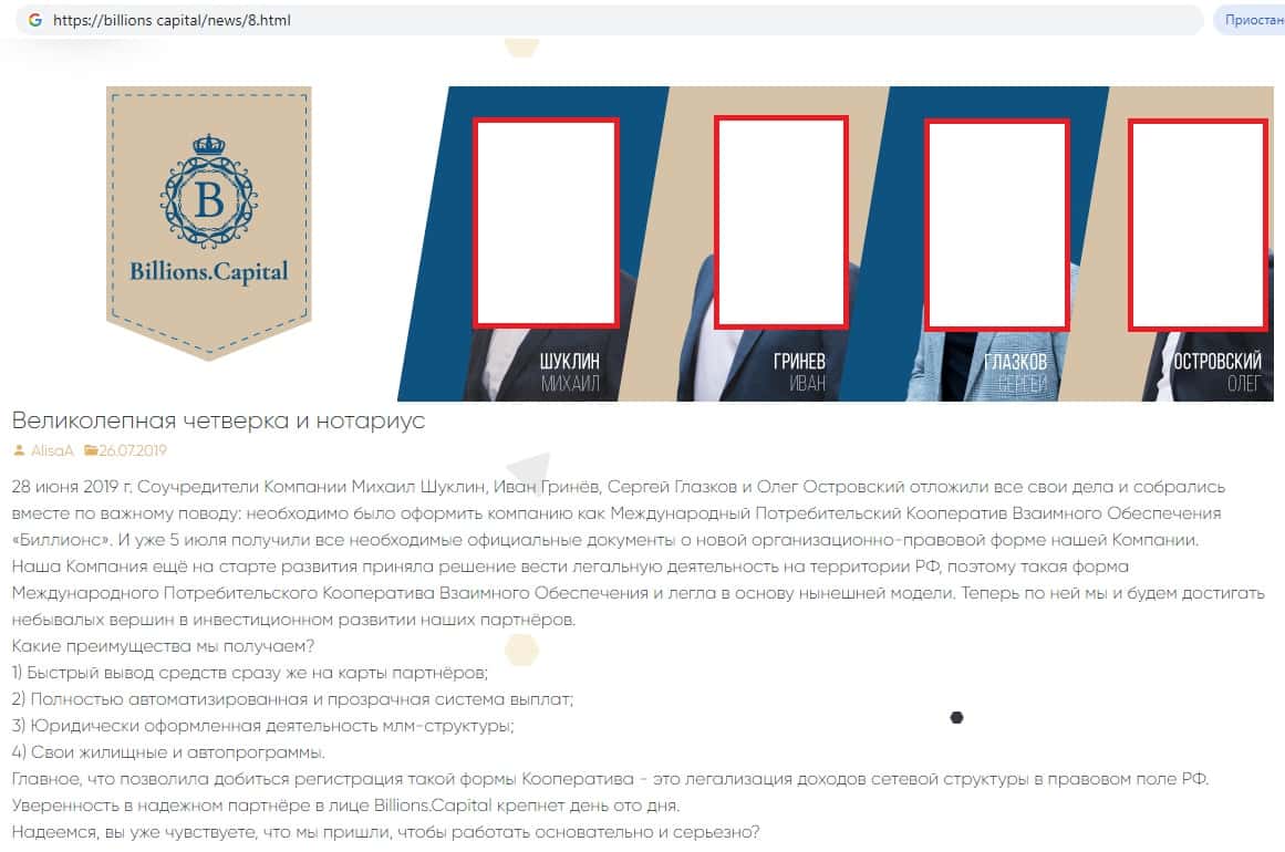 - Информация о руководстве аферистов Billions Capital
