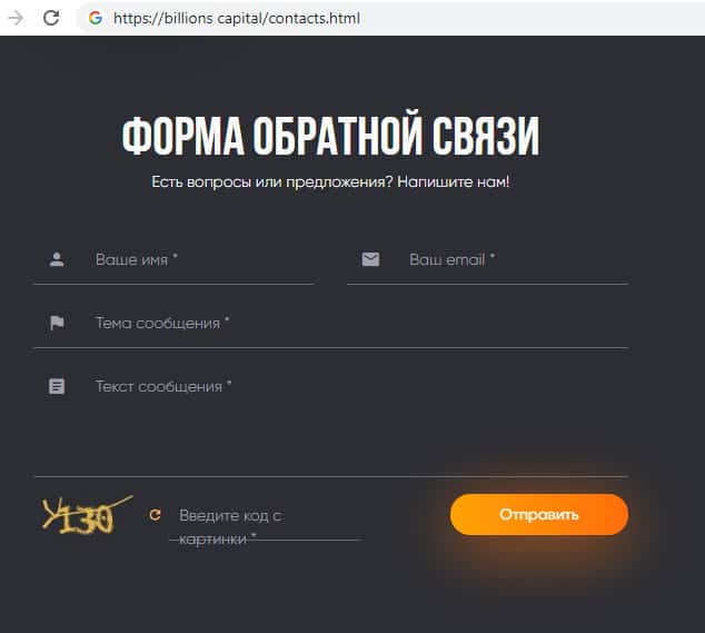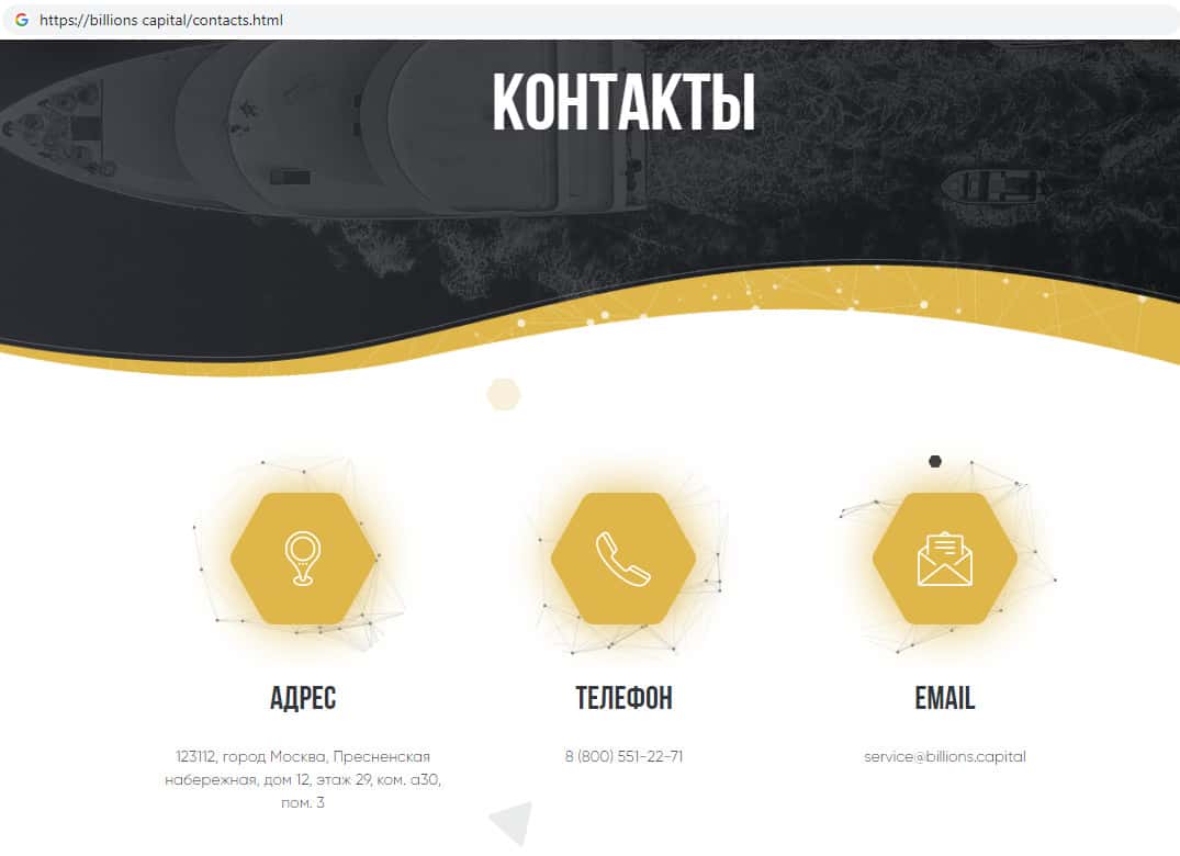 - Контактная информация жульнической организации Биллионс Капитал