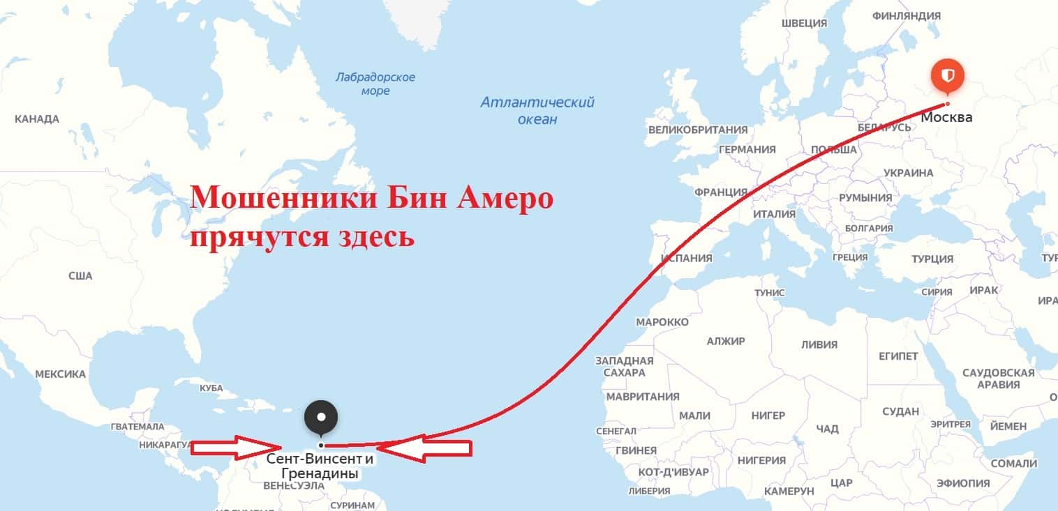 Местом регистрации скам-брокера Bin Amero является один из оффшоров, а именно остров Сент-Винсент и Гренадины.