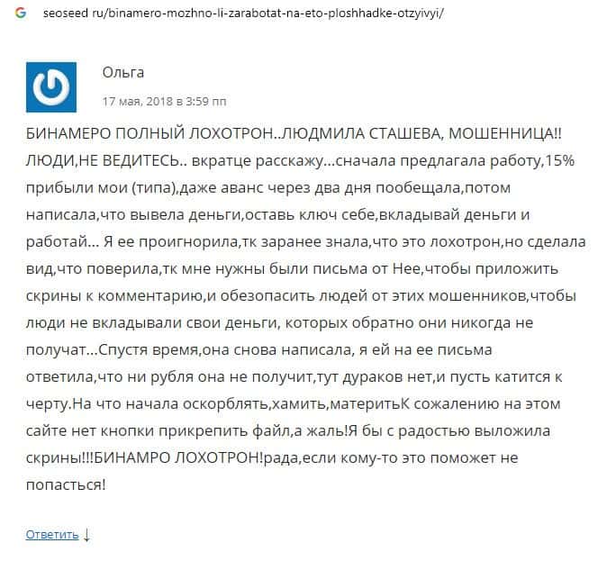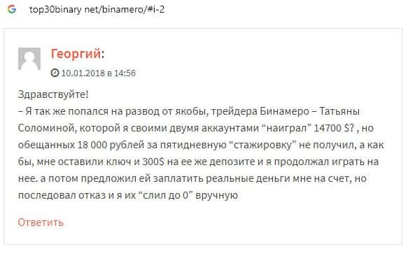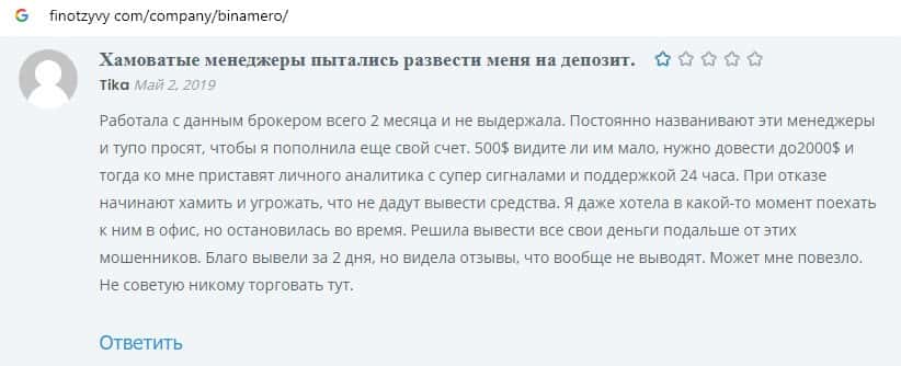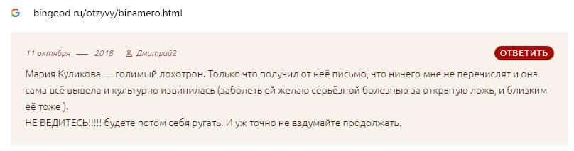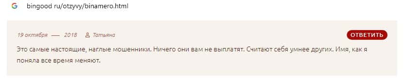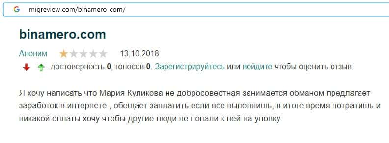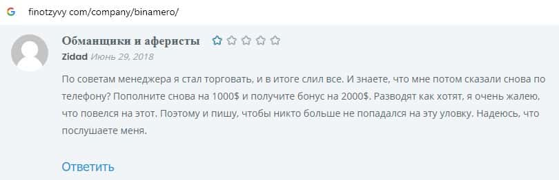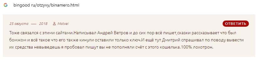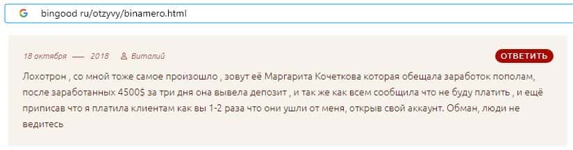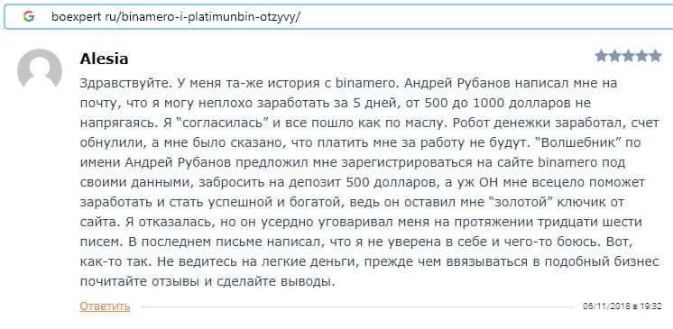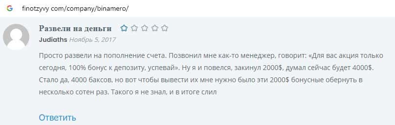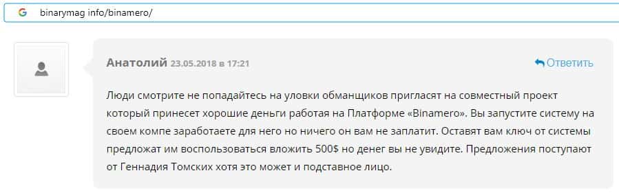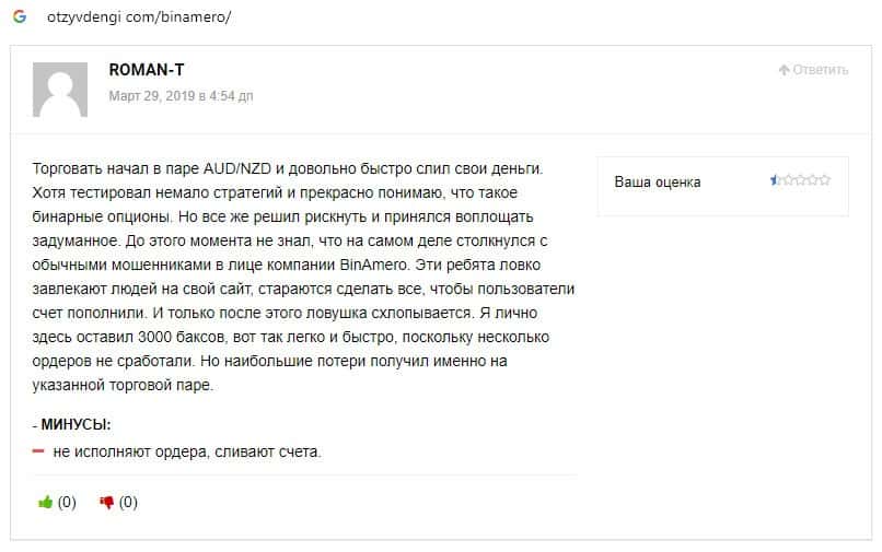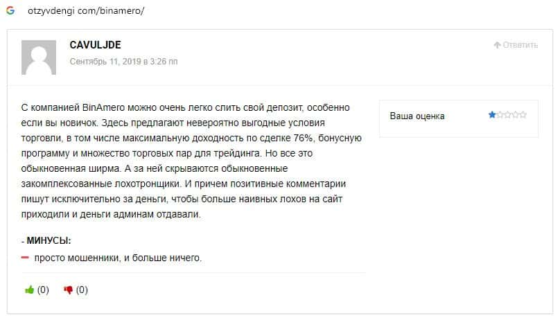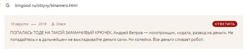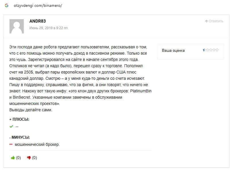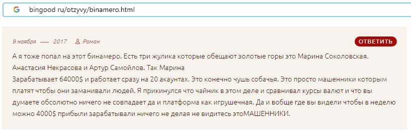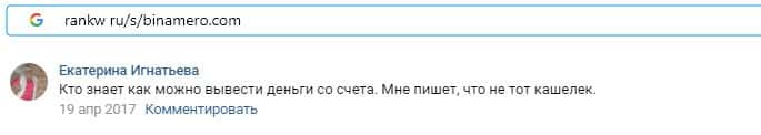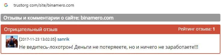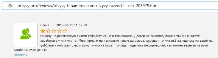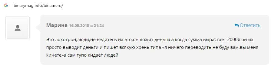 Далее предлагаем ознакомиться с пользовательскими отзывами, которые являются подтверждением того, что Bin Amero это банальный лохотрон.