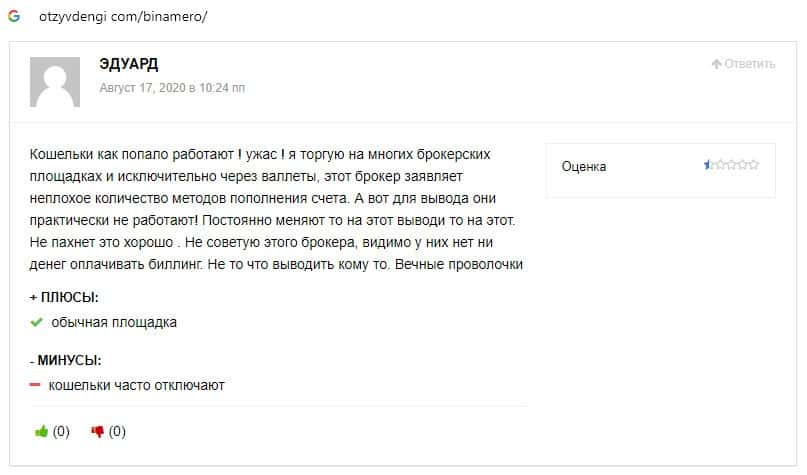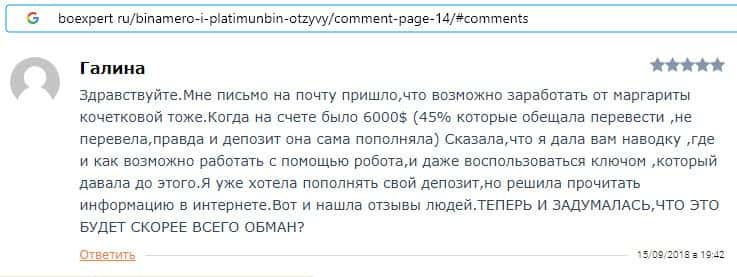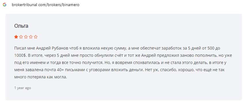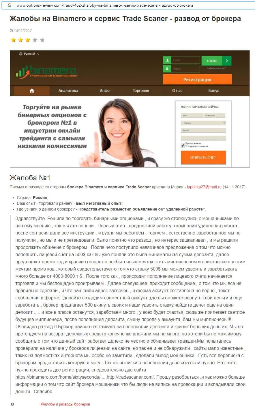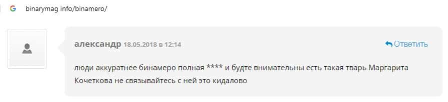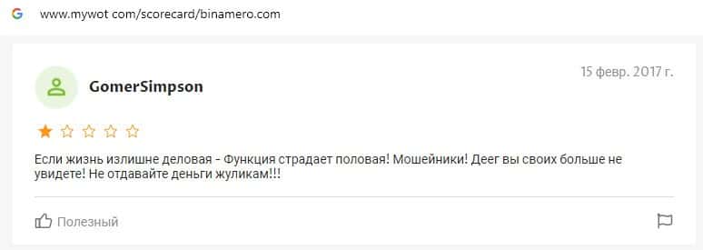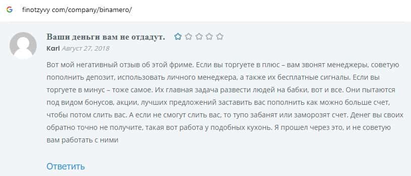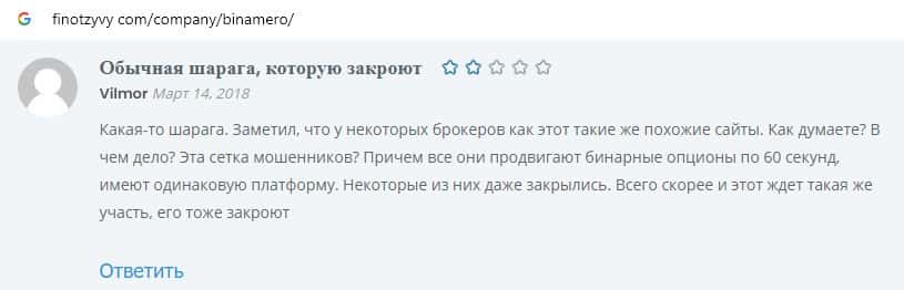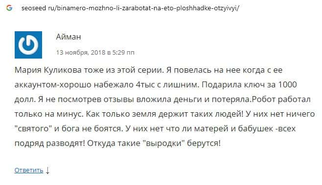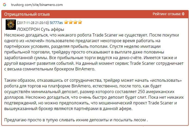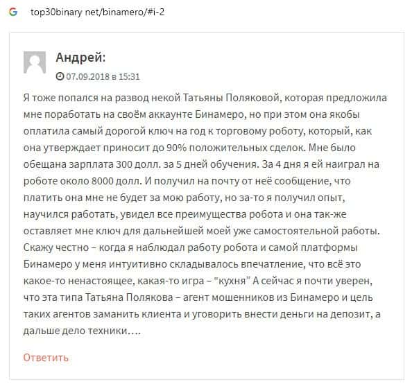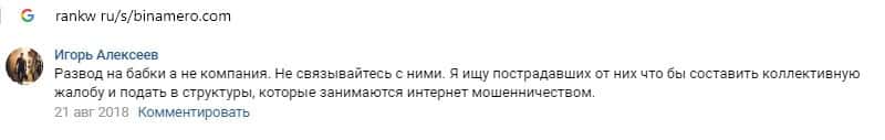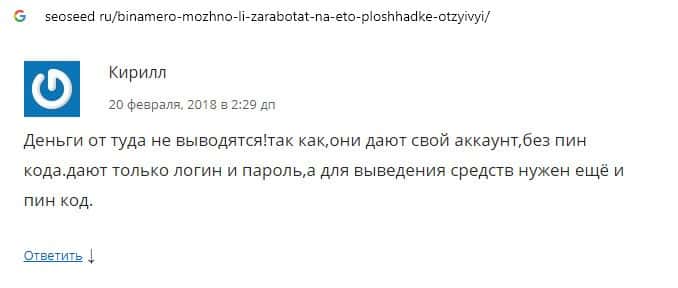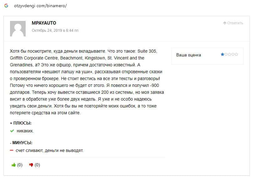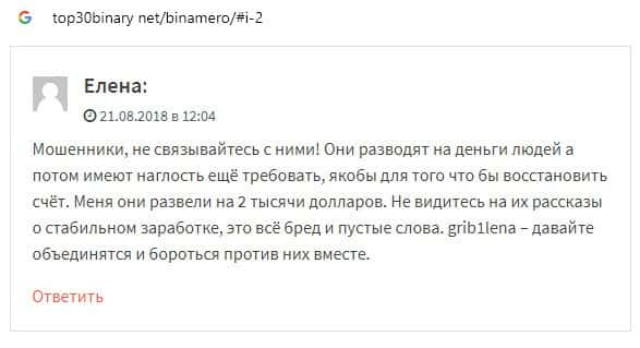 Далее предлагаем ознакомиться с пользовательскими отзывами, которые являются подтверждением того, что Bin Amero это банальный лохотрон.