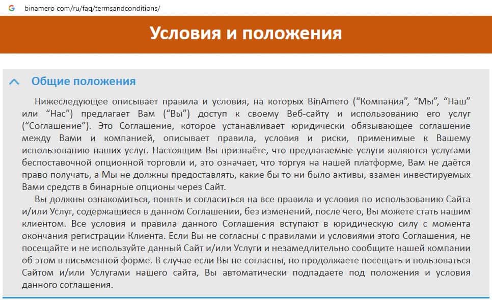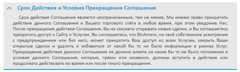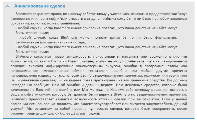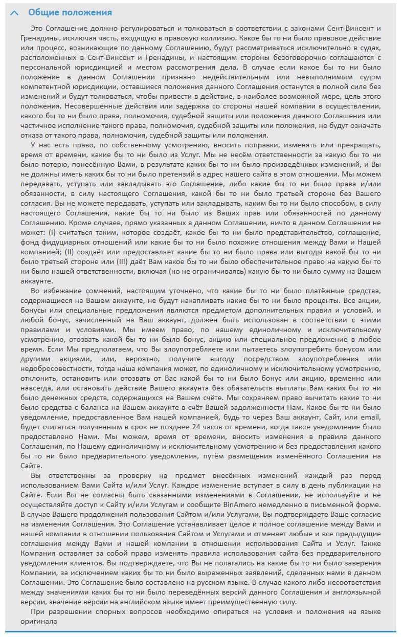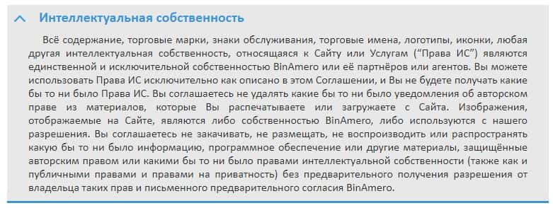 Клиентское соглашение скам-компании Bin Amero не имеет никакой юридической силы, больше напоминает инструкцию по использованию сайта.