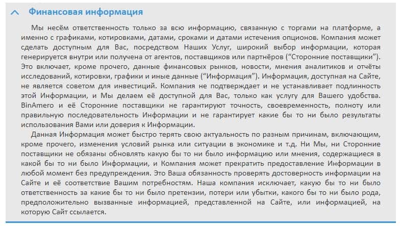 Далее предлагаем ознакомиться с информацией об условиях обслуживания клиентов псевдо-брокерской организации Бин Амеро.