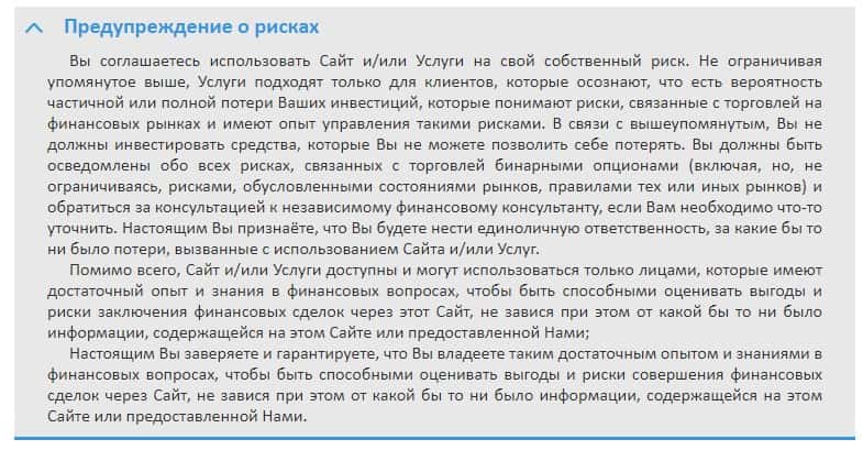 Шулера Bin Amero предупреждают о том, что торговля на их сайте сопряжена высоким уровнем риска потери средств, за что компания конечно же ответственности не несет.