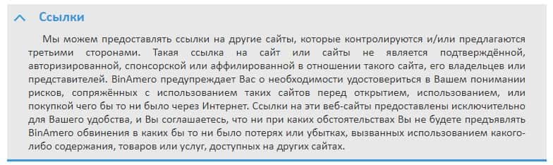 Скам-брокер Bin Amero на своем официальном сайте размещает ссылки, за содержание которых скам-организация ответственности не несет.