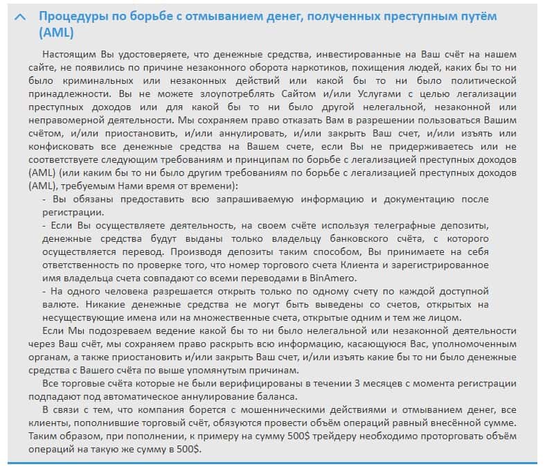 Обманщики Bin Amero для того, чтобы казаться надежной компанией лгут о том, что данная контора ведет борьбу за отмывание денежных средств.