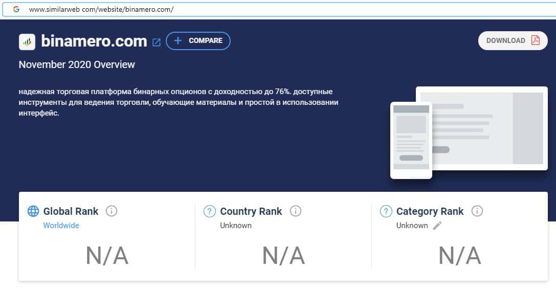 При проверке источников бренда по странам скам-компании Bin Amero на сайте similarweb com, информация отсутствует, что является признаком фейкового лохотрона.