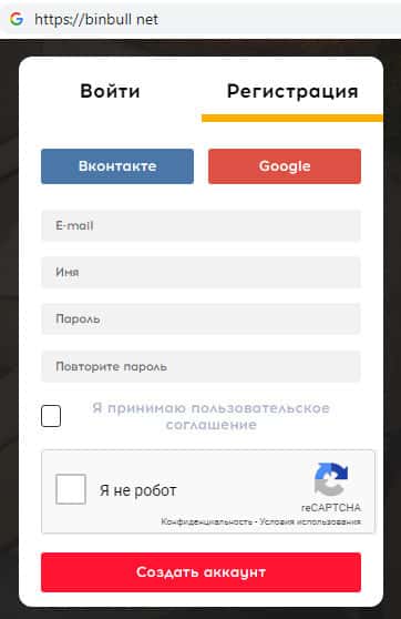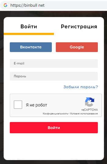 Мошенники так же предлагают зарегистрироваться через Российские социальные сети, учитывая то, что место регистрации шараги BinBull на Кипре. Якобы под предлогом того, что это очень просто, нажал ярлык и все готово. Не забывайте, что аферисты Бин Булл фиксируют все данные, которые указаны на страничках пользователей
