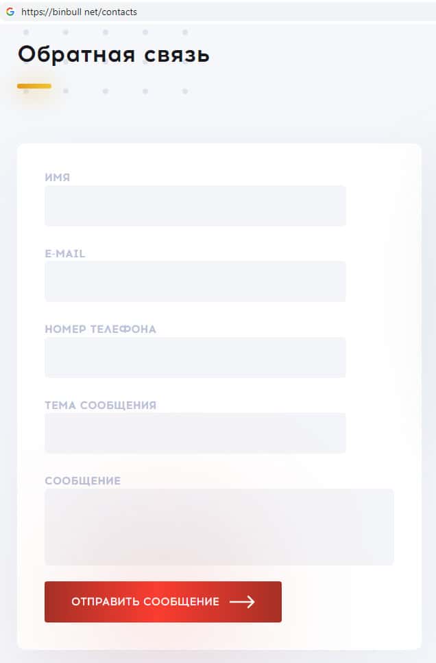 Мошенническая контора BinBull для связи на своем официальном сайте не указала номера контактного телефона своей организации, зато аферисты указывают адрес электронной почты своей конторы, который указан ниже:
