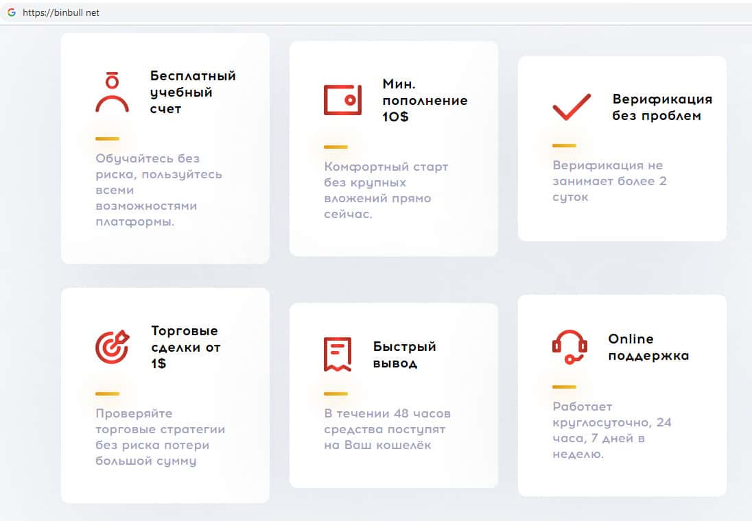 Шуллера BinBull могут рассказывать все что угодно, чтобы привлечь как можно большее количество наивных людей в свою организацию. Торговлю на сайте Бин Булл невозможно назвать безопасной, потому что информацию, которую они преподносят пользователю, очень часто встречается на подобных мошеннических сайтах, особенно о бесплатных услугах.