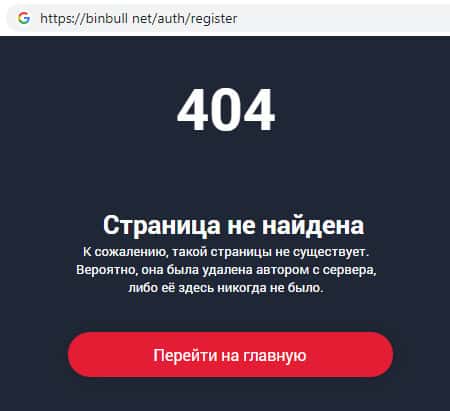 Некоторые ссылки, которые предназначены для регистрации на сайте аферистов BinBull не работают. Это первый признак липового сайта, который сделали за минуту. Так же данный сайт очень долго загружается и на нем много бесполезной часто повторяющейся информации о бонусах и предложениях, которые не существуют.