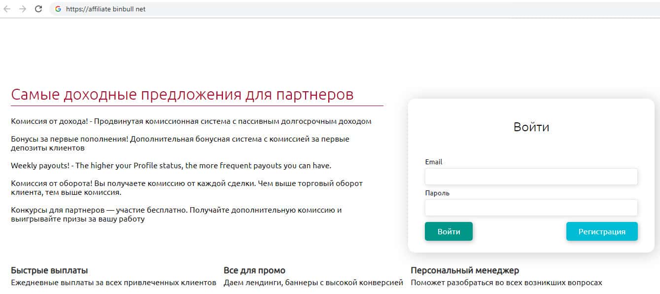 Мошенники BinBull предлагают другим подобным конторам стать их партнерами, предлагая якобы выгодные предложения.Жулики Бин Булл что только ни придумают чтобы кого-то обдурить и накрутить. На самом деле надежная компания не станет предлагать какие-либо скидки и подарки за сотрудничество с ними.