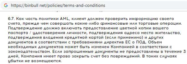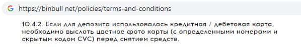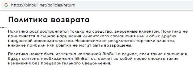 - Информация о политике возврата платежей на сайте жуликов BinBull