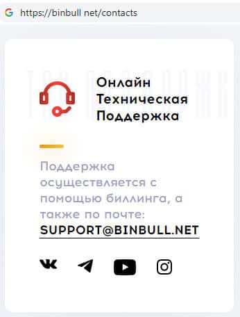- адрес электронной почты: SUPPORT@BINBULL NET