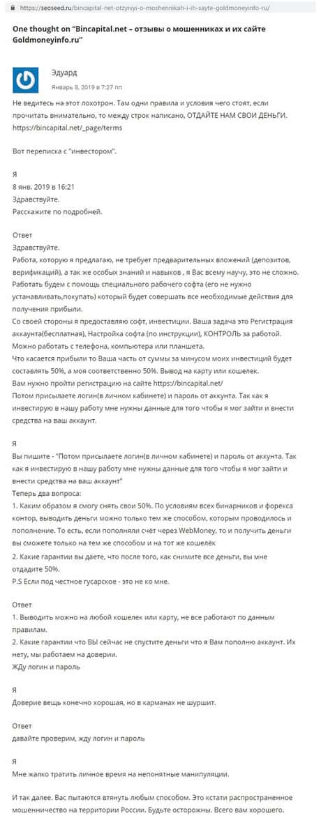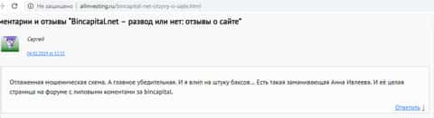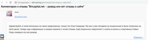 - Новый комментарий от попавшейся на удочку Бин Капитал жертвы
