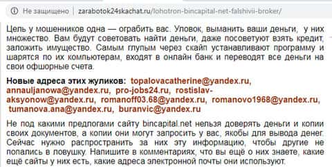Портал zarabotok24skachat ru опубликовал свой материал об аферистах из BinCapital. Собственно ничего нового, лишь подтверждение того, о чем мы уже знаем – шулерская контора, при помощи разнообразных уловок вытягивающая деньги из своих клиентов.