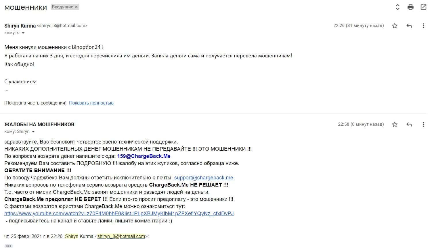 - Очередная жалоба на мошенническую организацию Бин Опцион 24