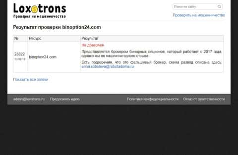 - Результат проверок BinOption24 com людей с loxotrons ru