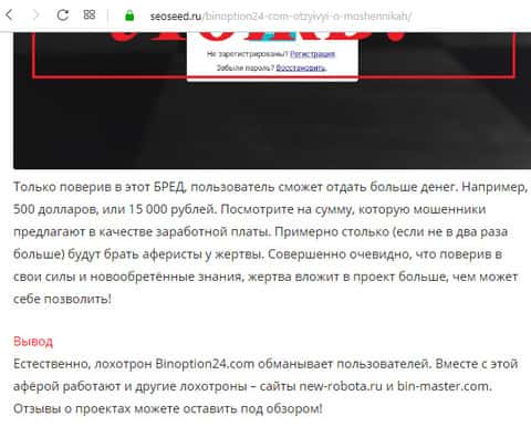 - Рецензия пользователя Author на сайт мошенничества BinOption24