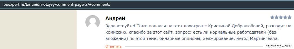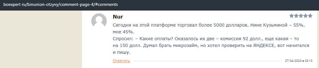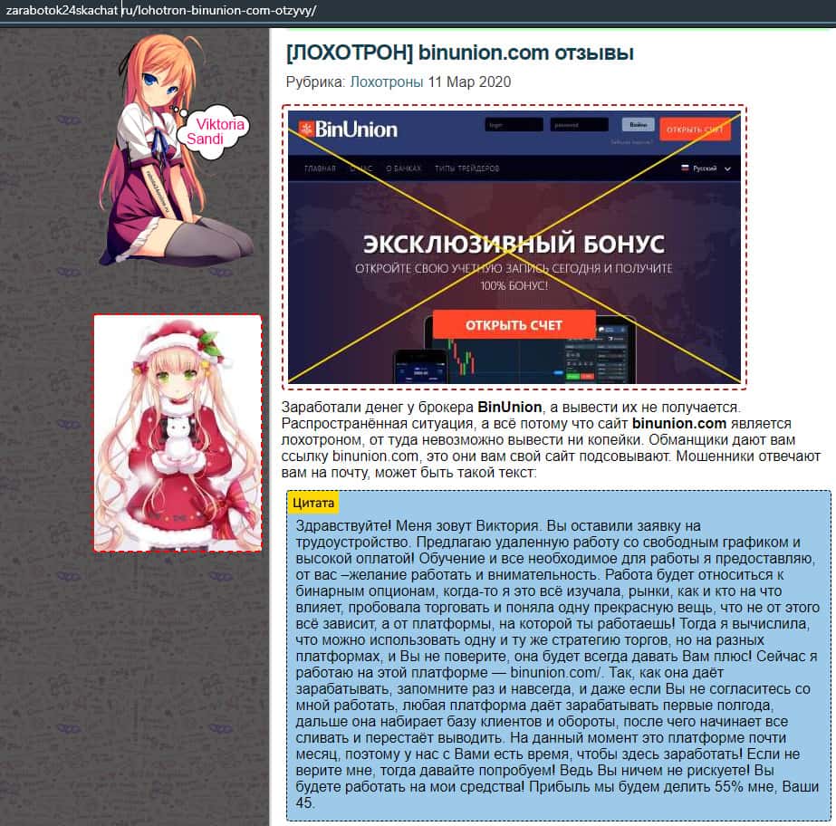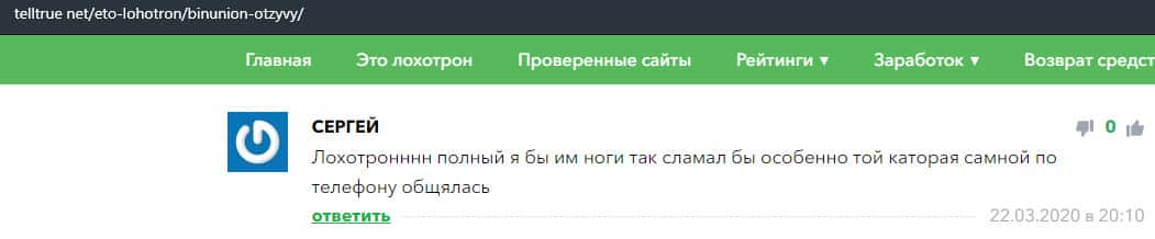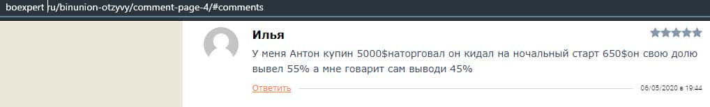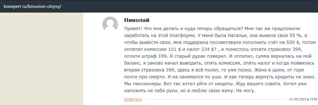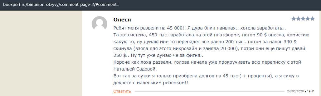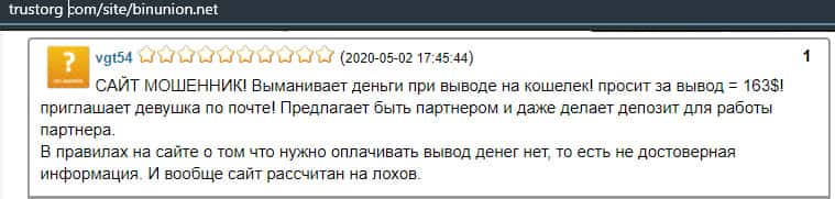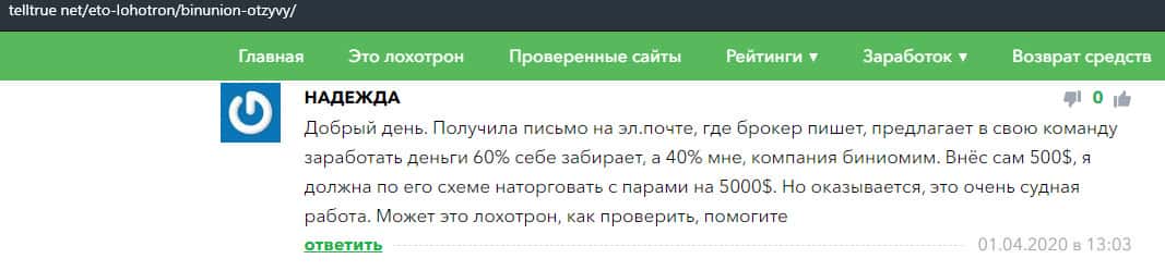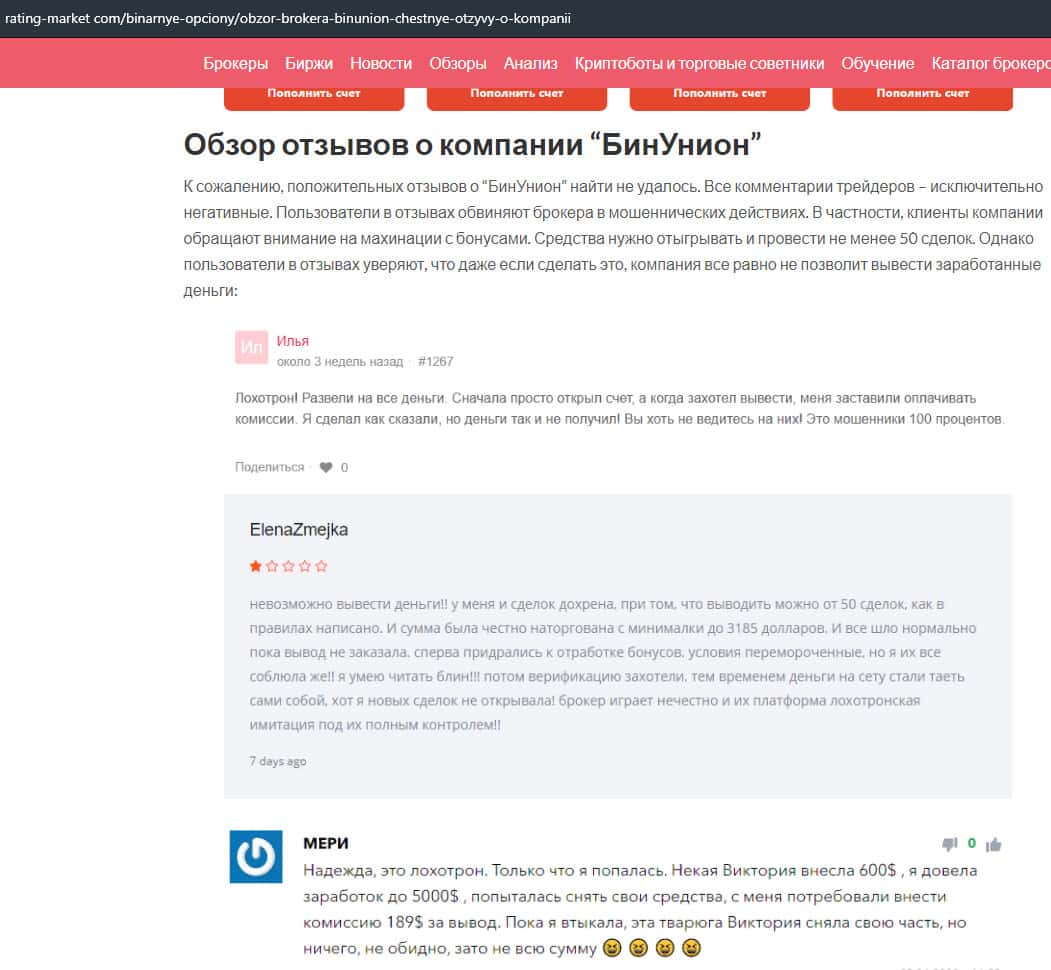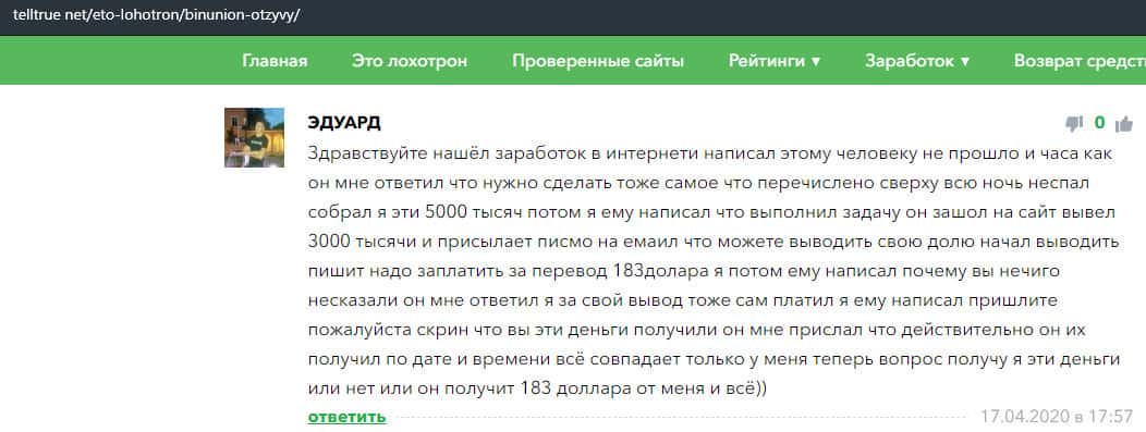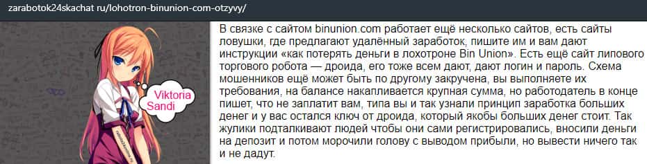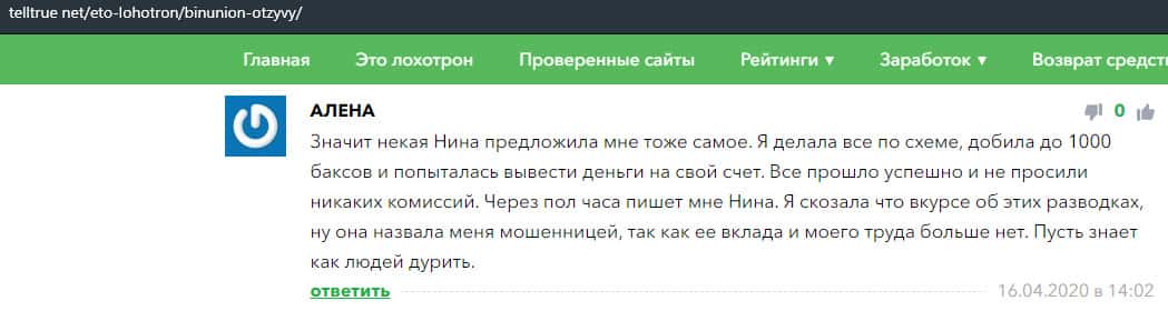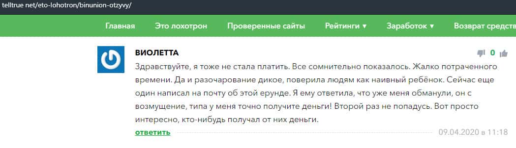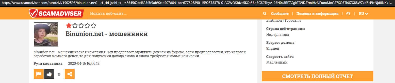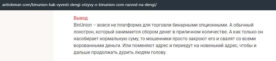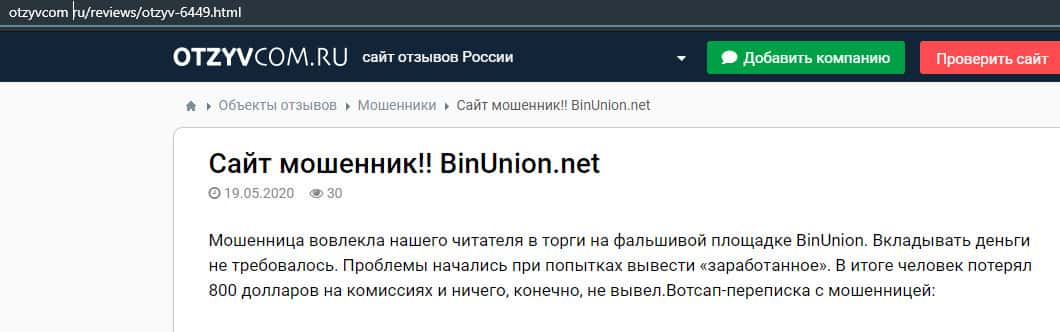 - Отзыв о разводе со стороны дилингового лохотрона BinUnion Net