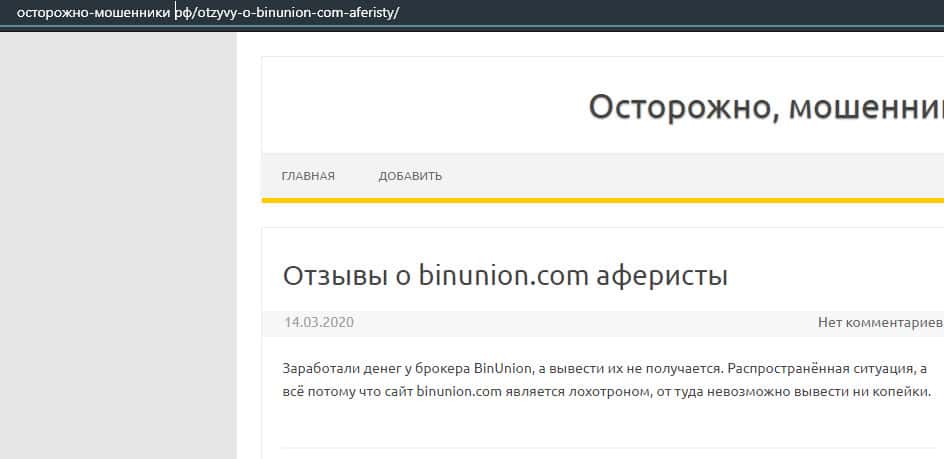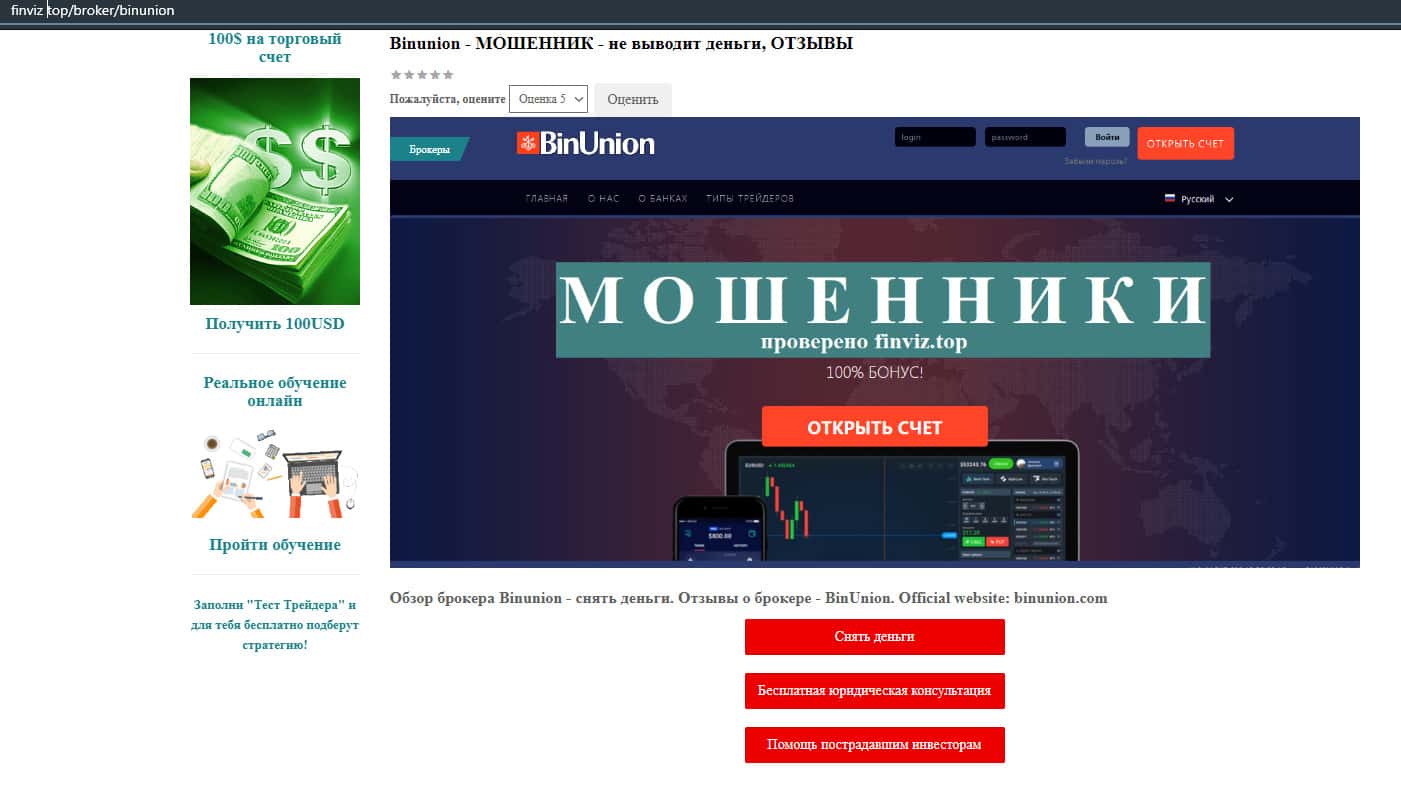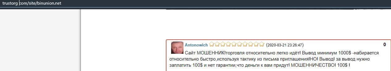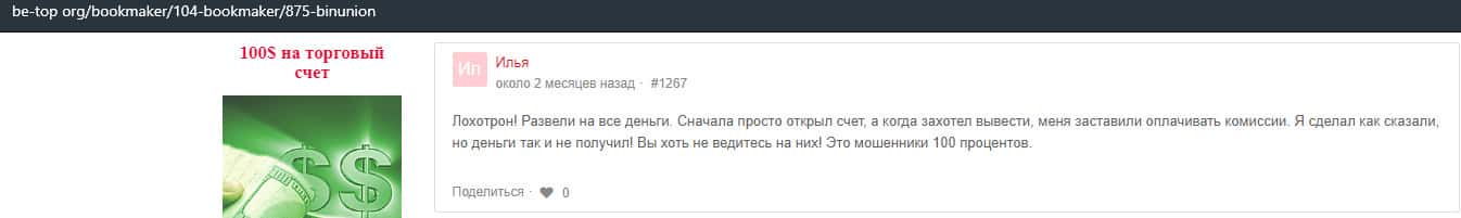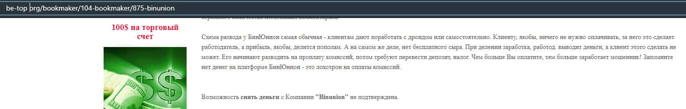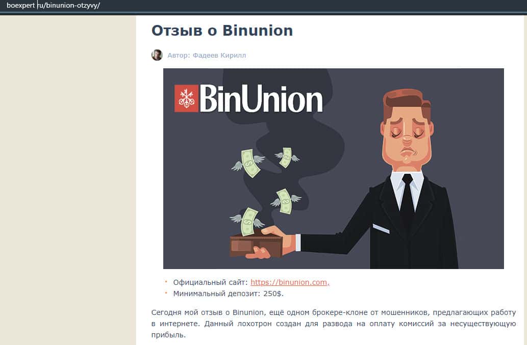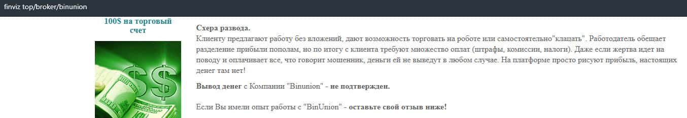 - Мошенники из BinUnion Net обворовали трейдера на 50 долларов