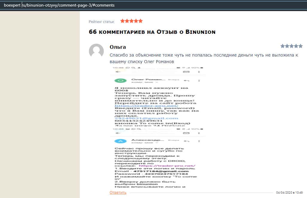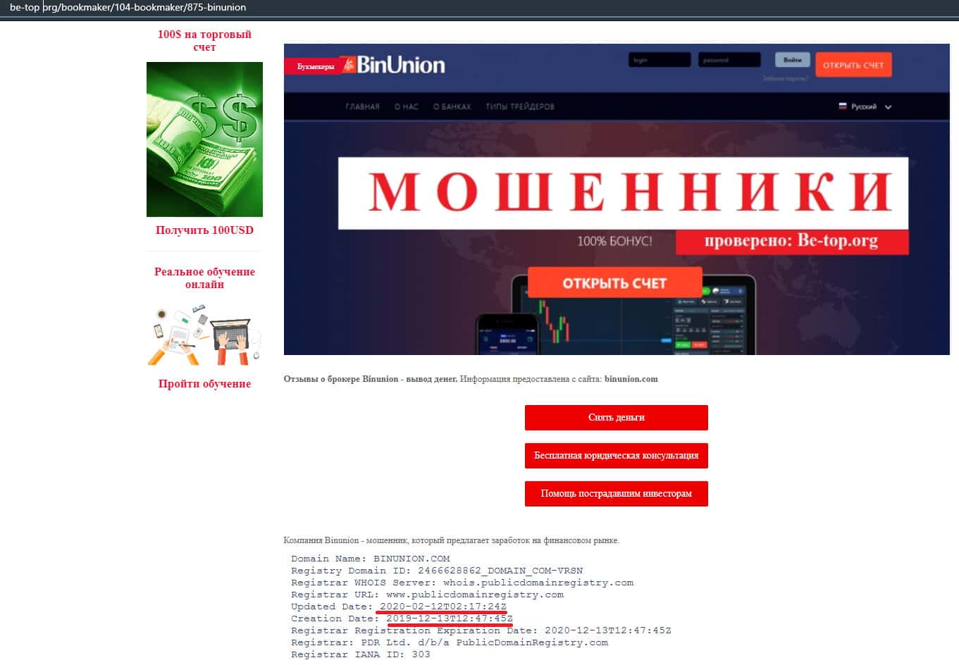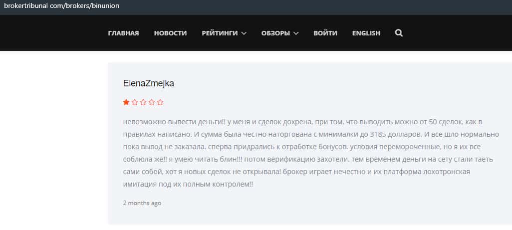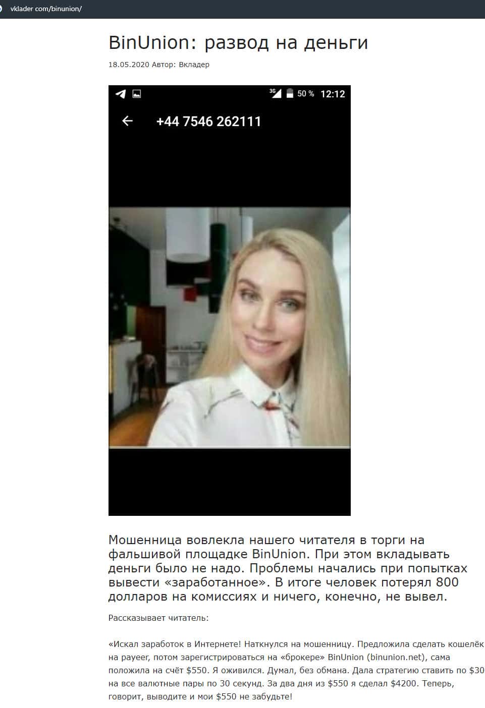- Мошенники из BinUnion Net обворовали трейдера на 50 долларов