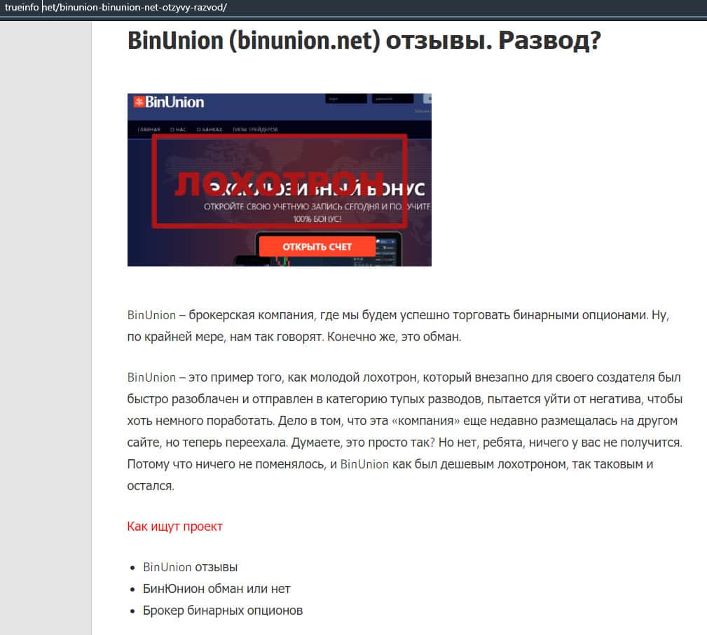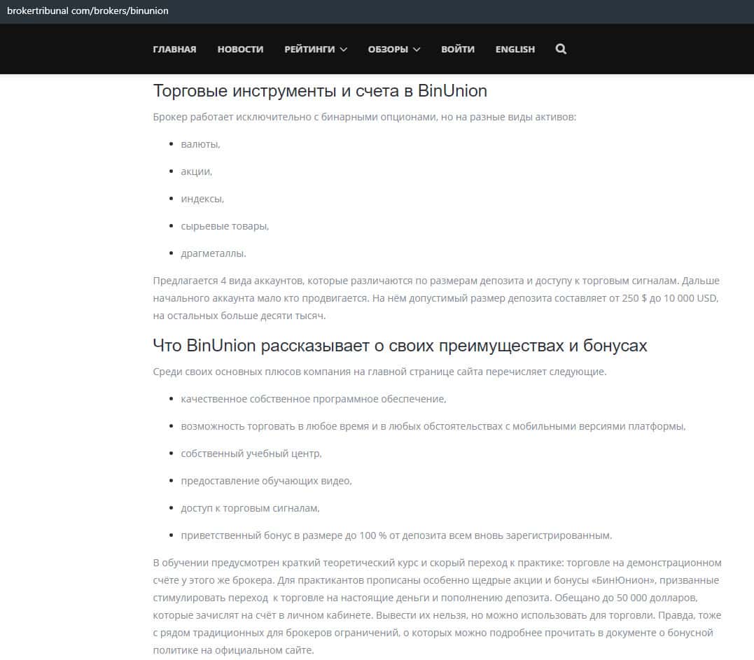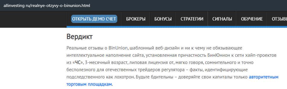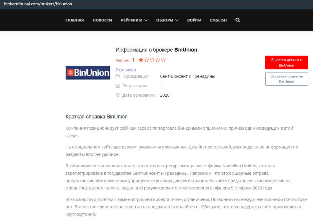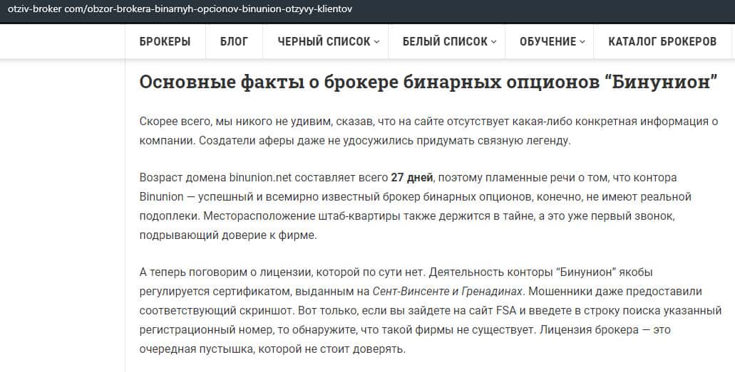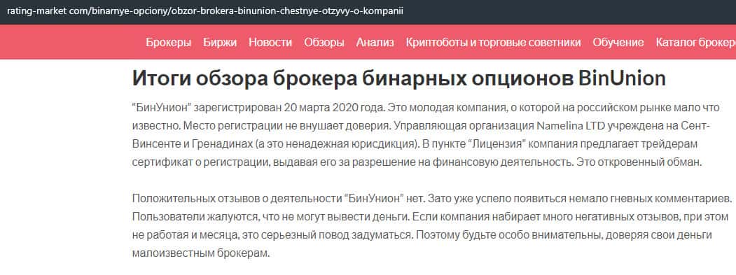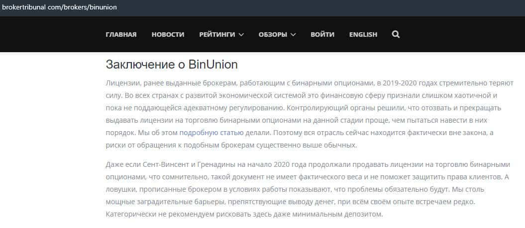 - Мнение авторитетного ресурса о бинарной конторе Бин Юнион
