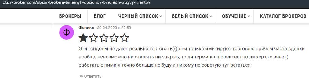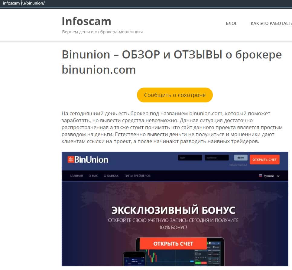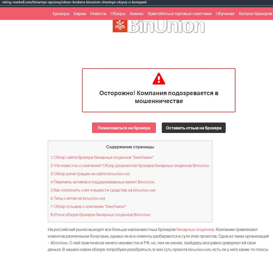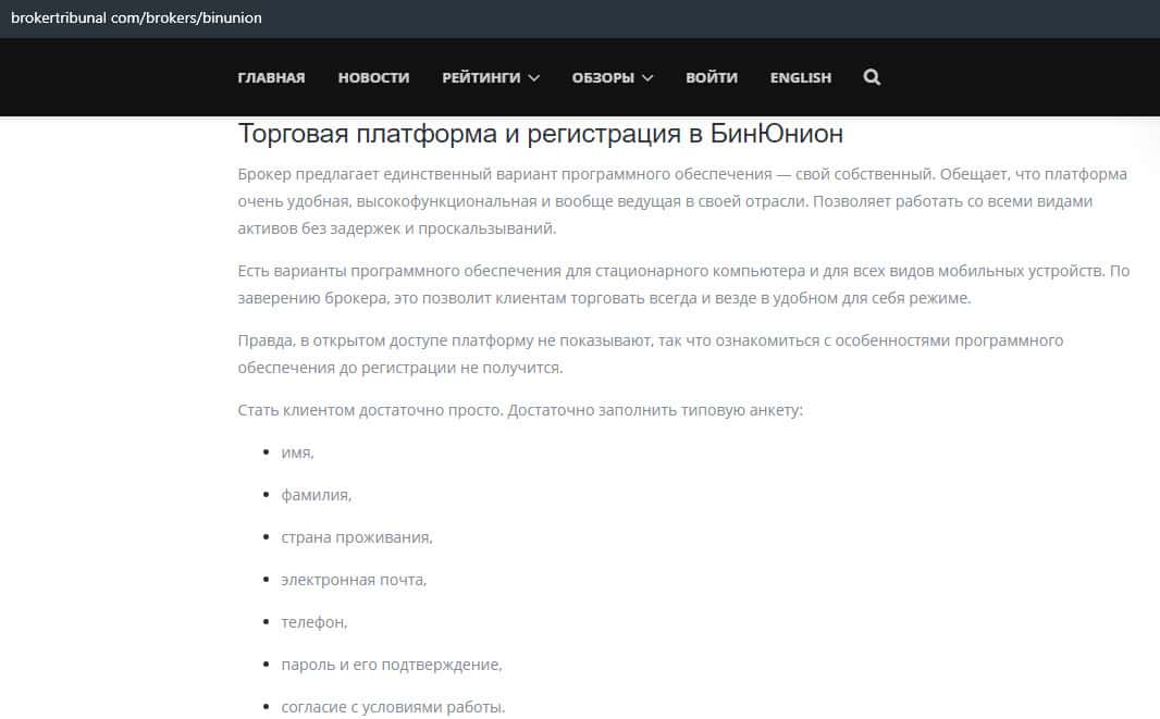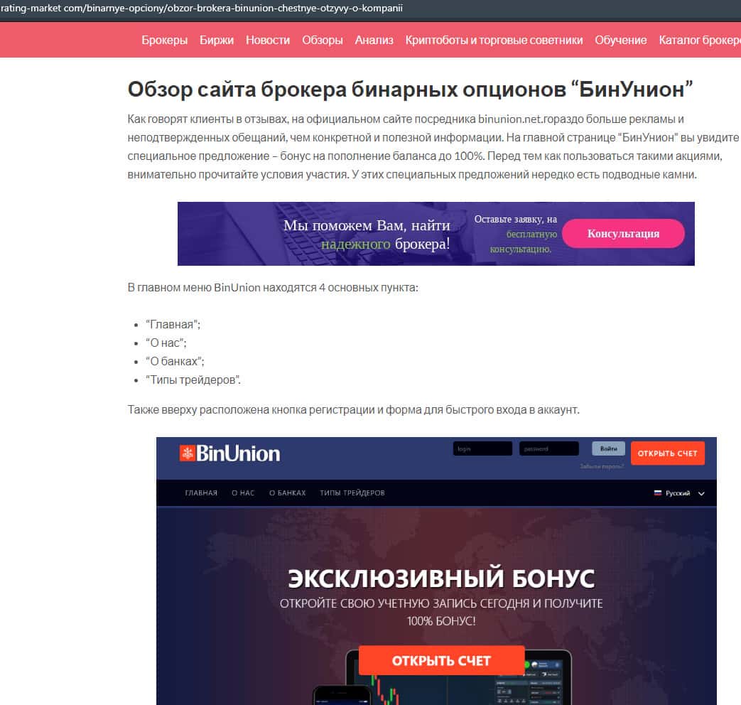 - Мнение авторитетного ресурса о бинарной конторе Бин Юнион