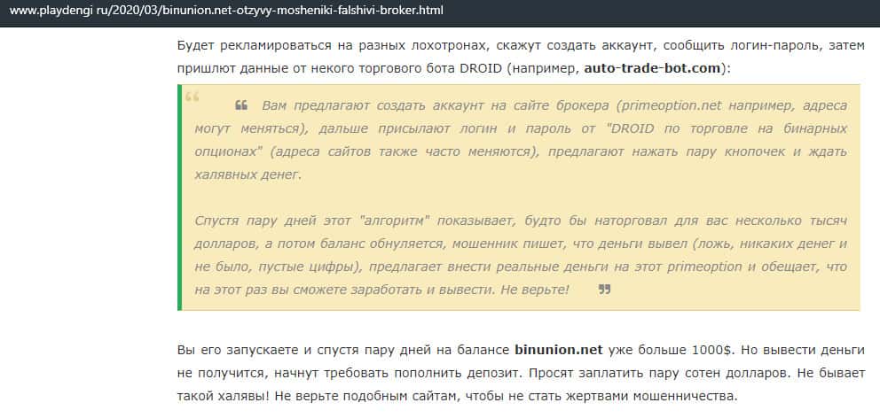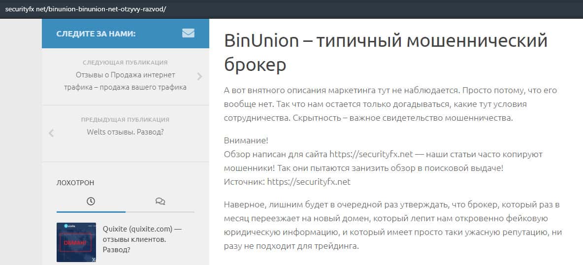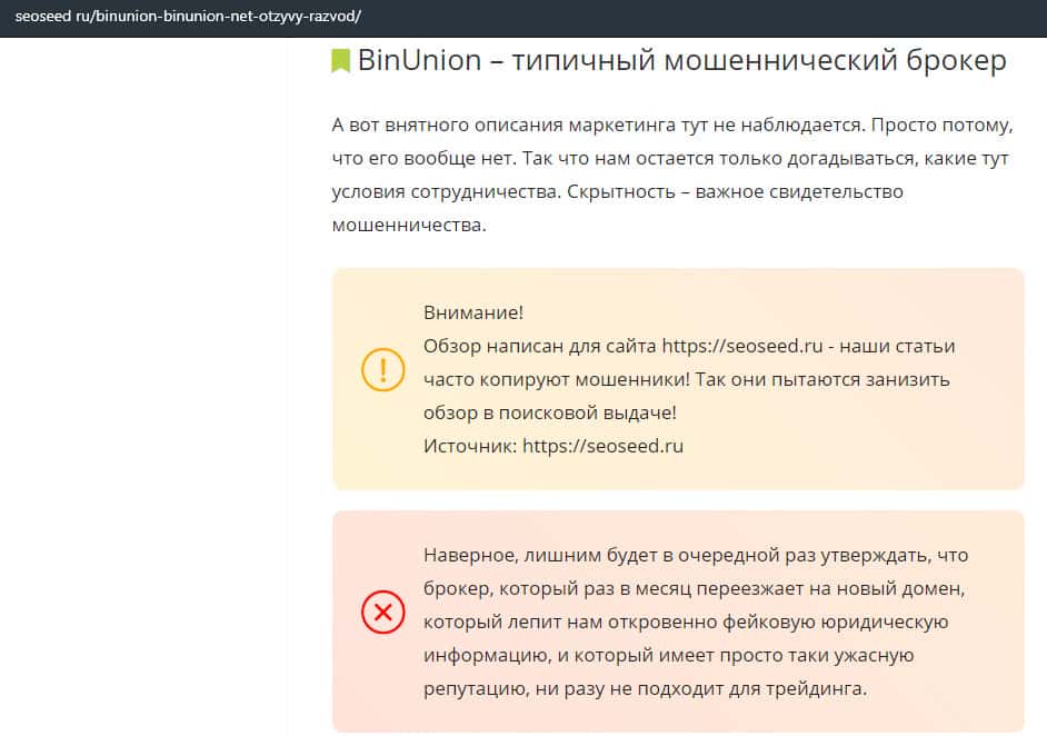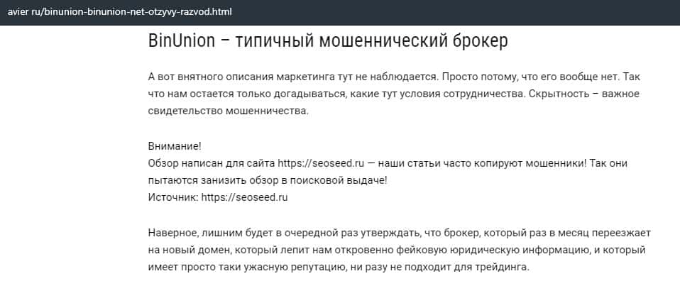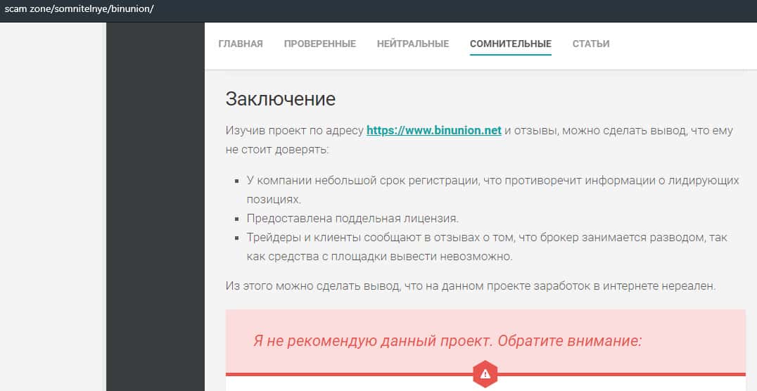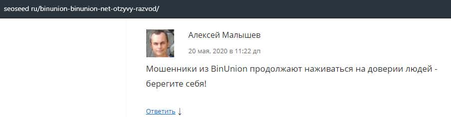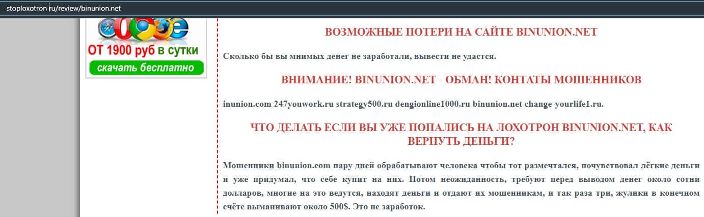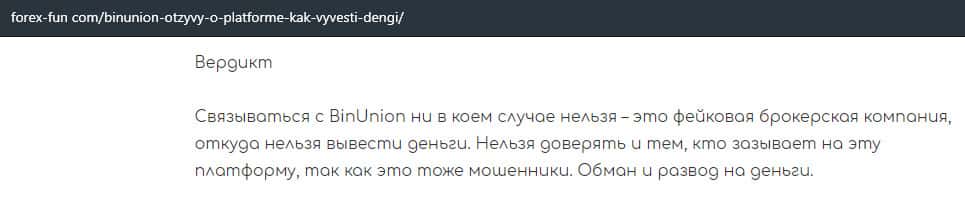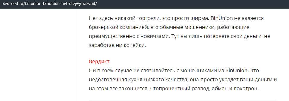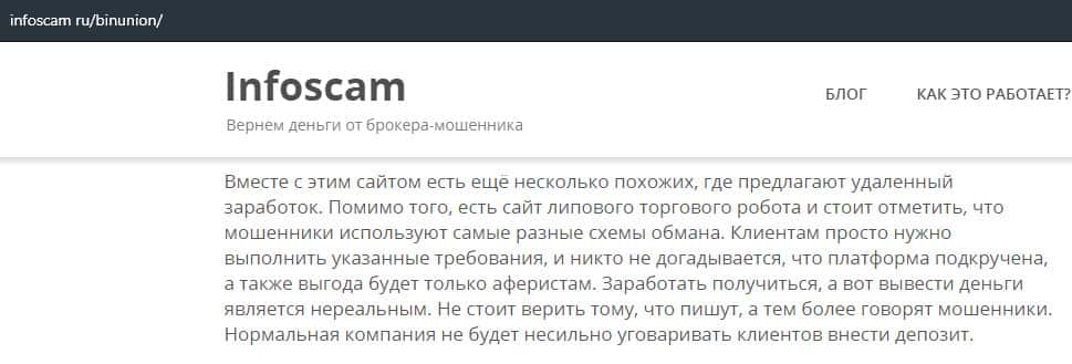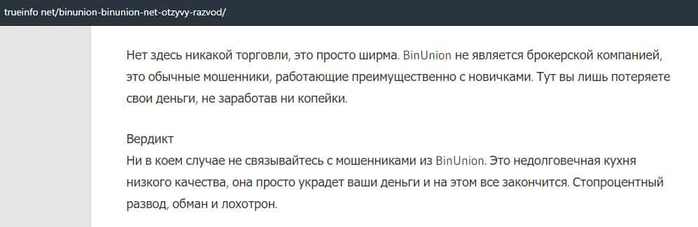 - Лохотрон BinUnion Net предупреждает, что можно слить с ними все деньги