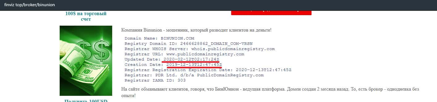- Сайту конторы BinUnion Net нет даже 100 дней