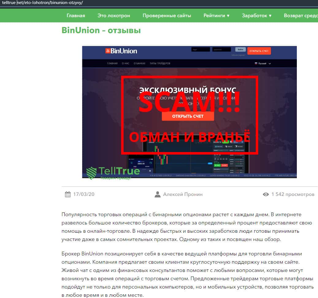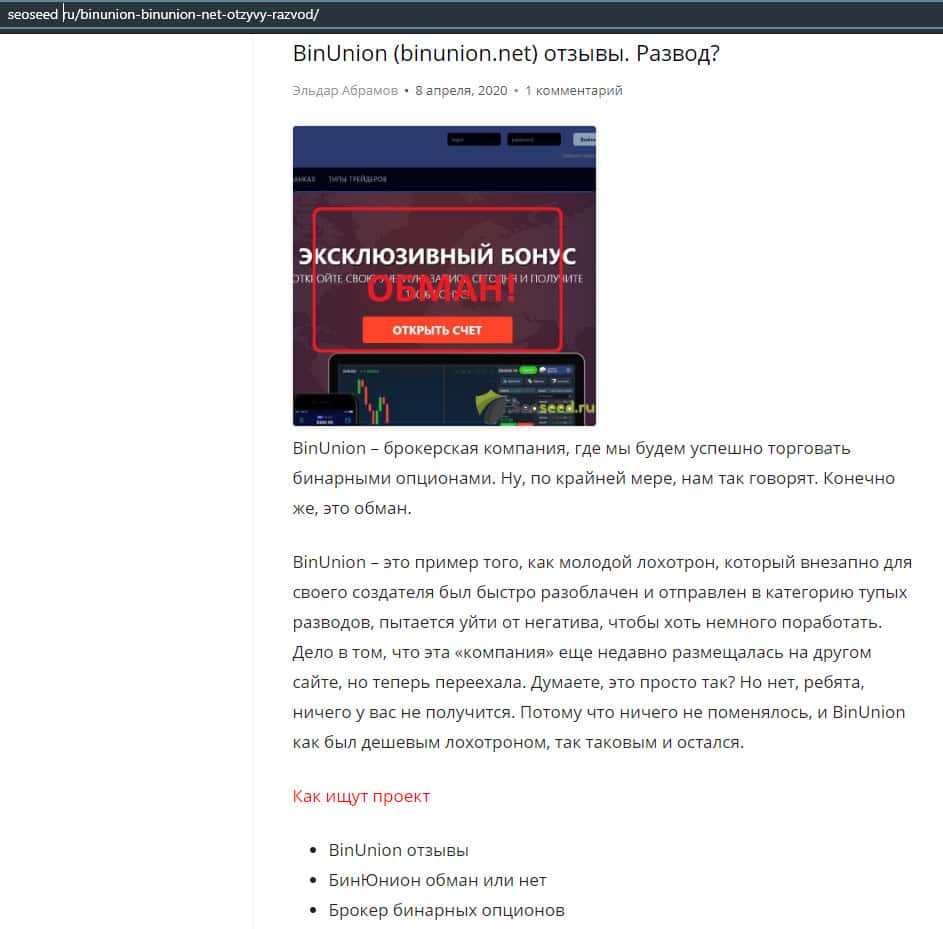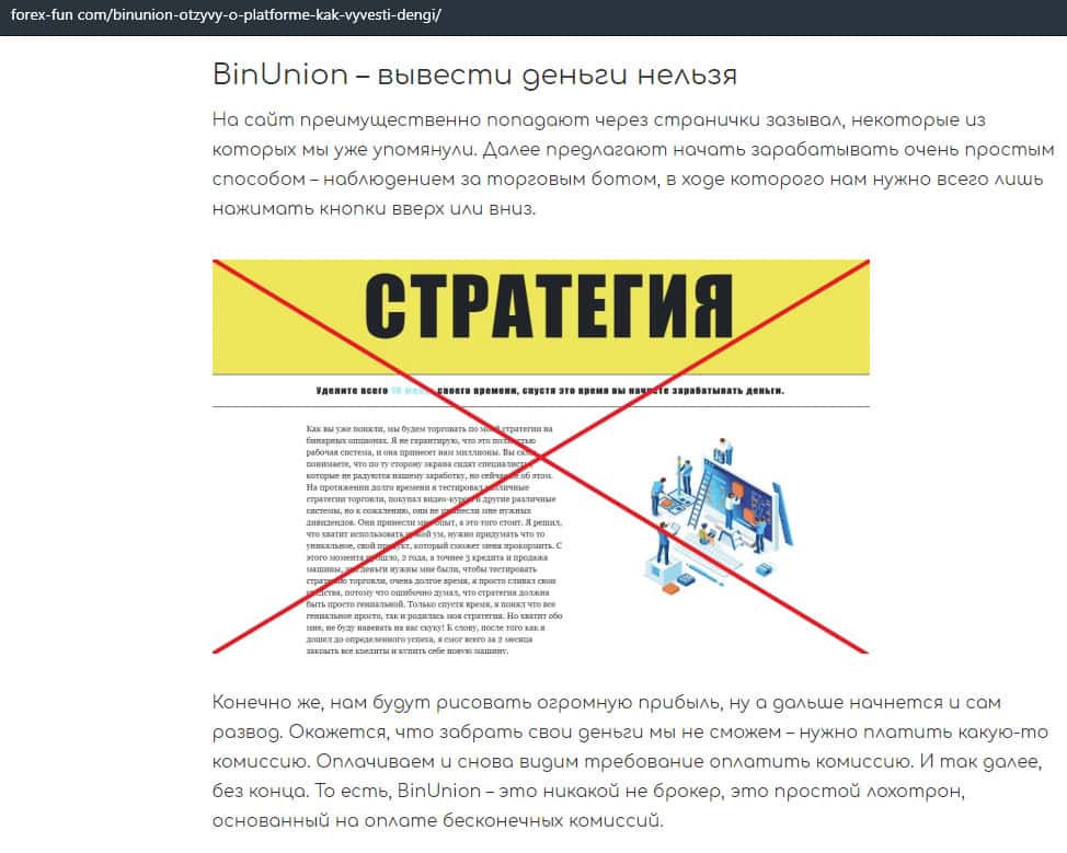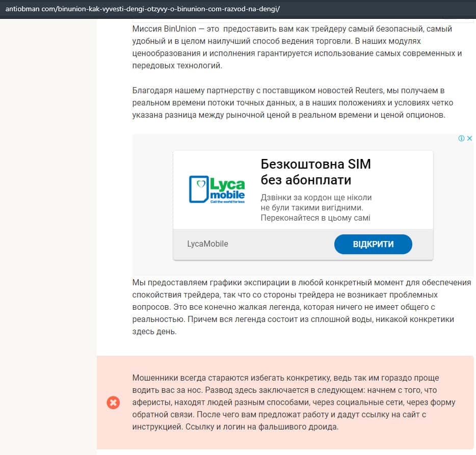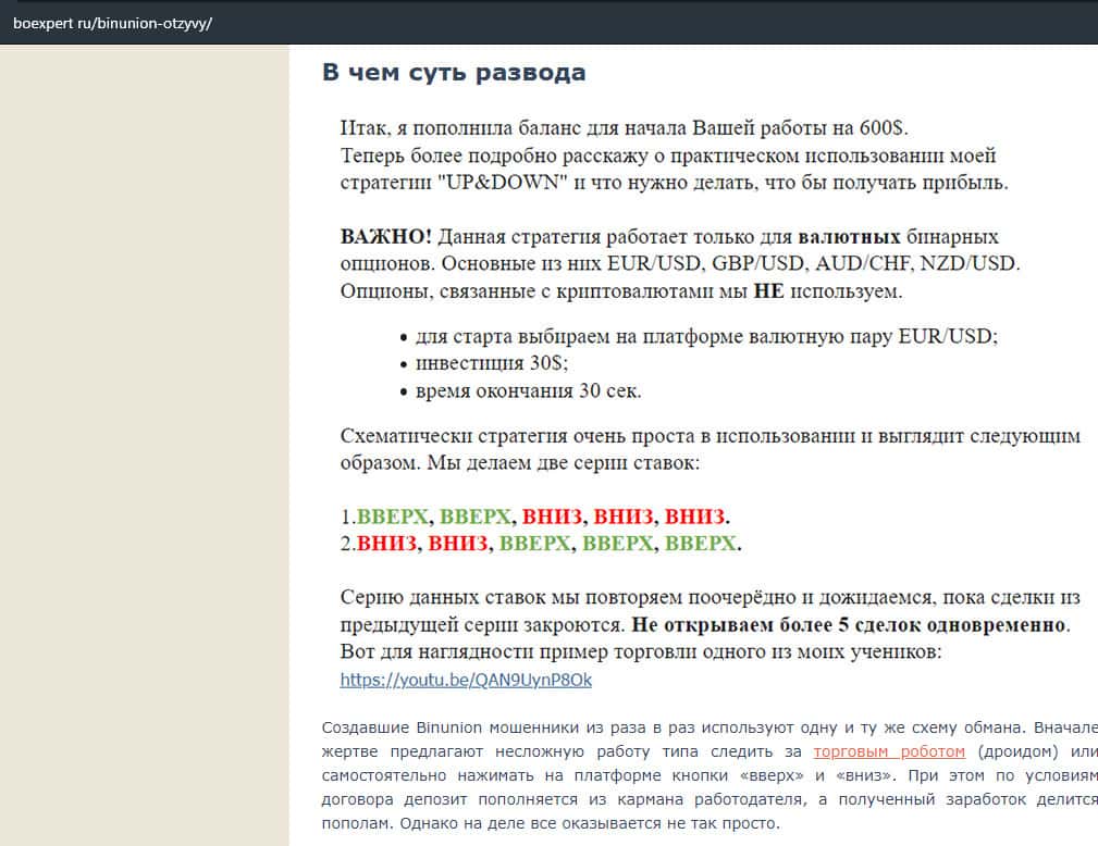 - Статья о мошенничестве в деятельности конторы BinUnion Net