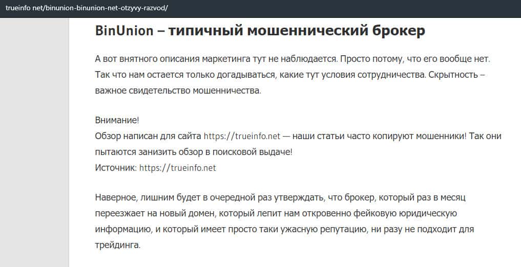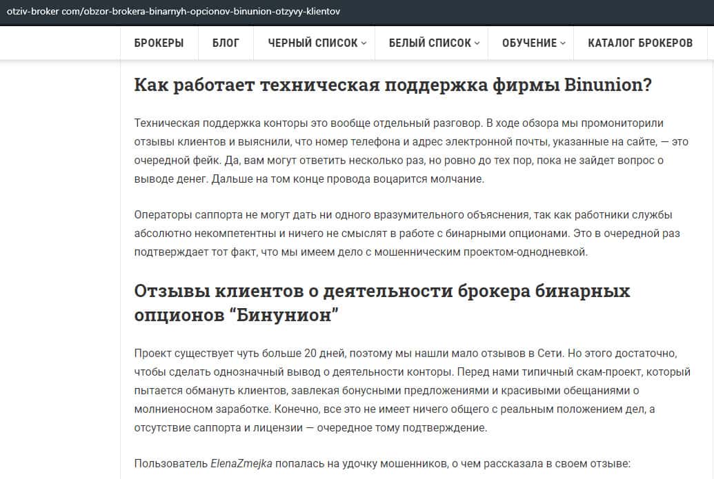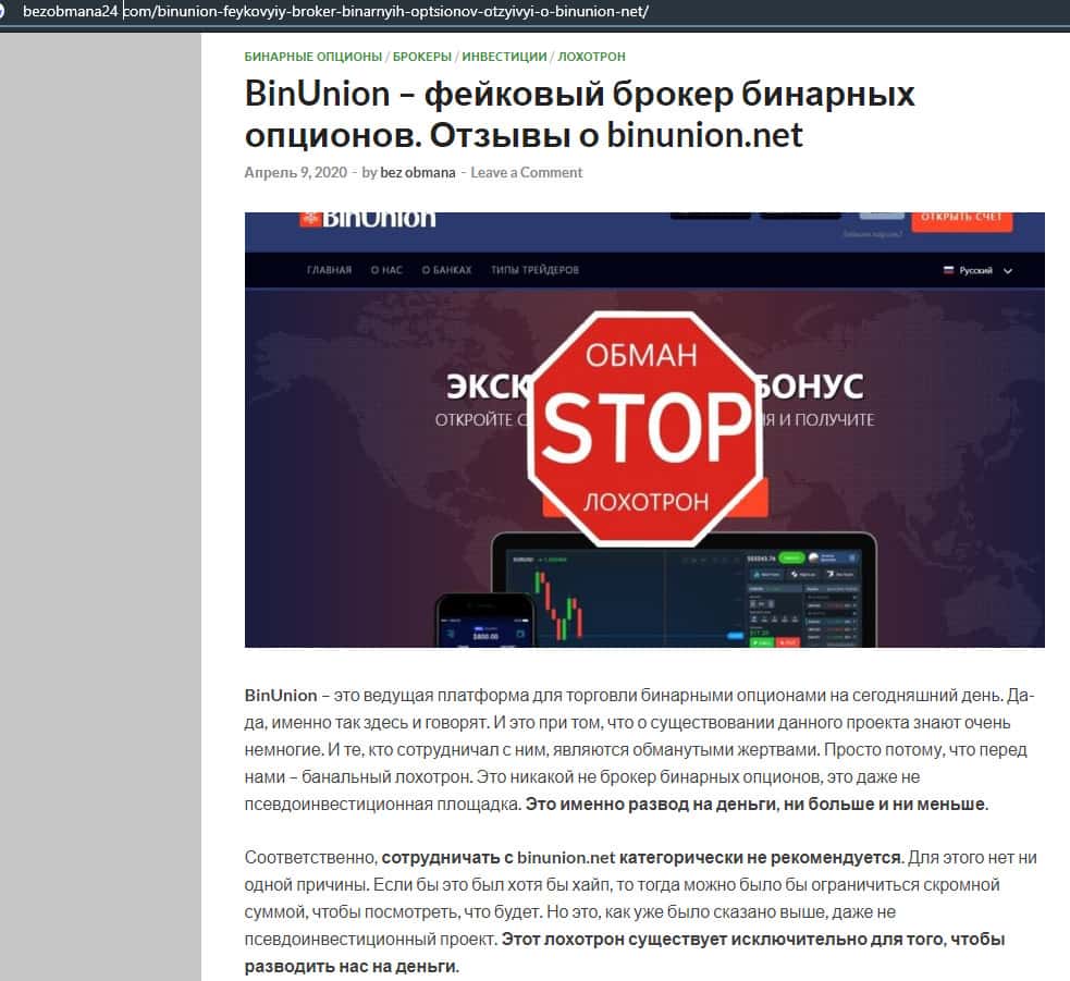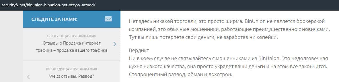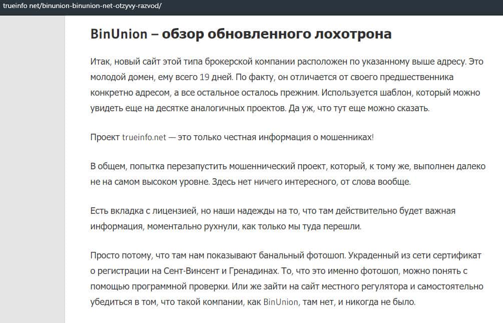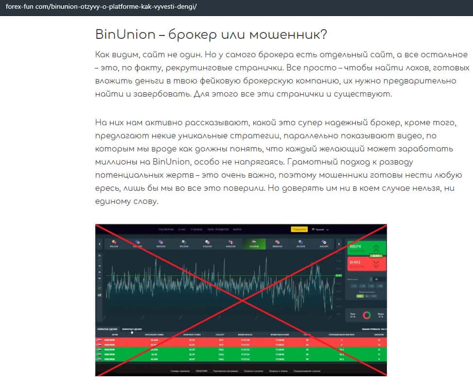 - Очередная статья о фейковом брокере BinUnion Net