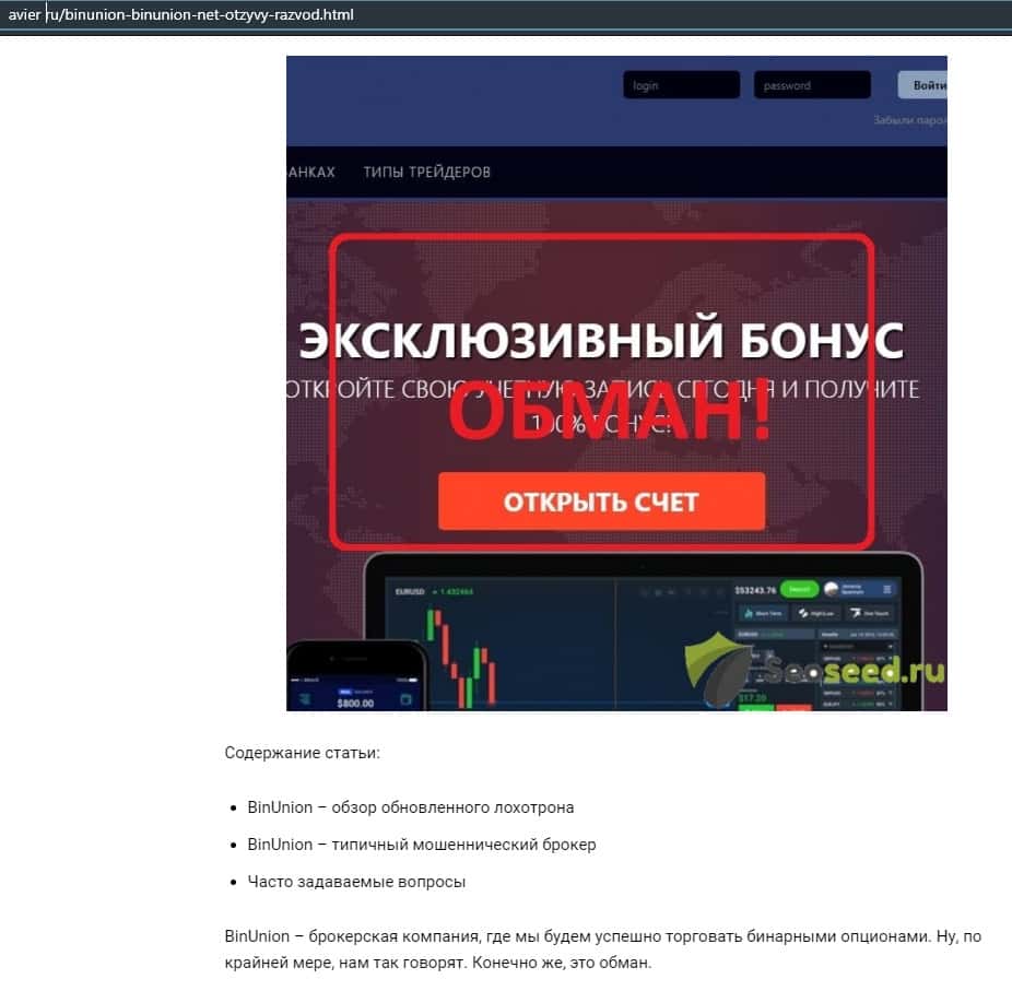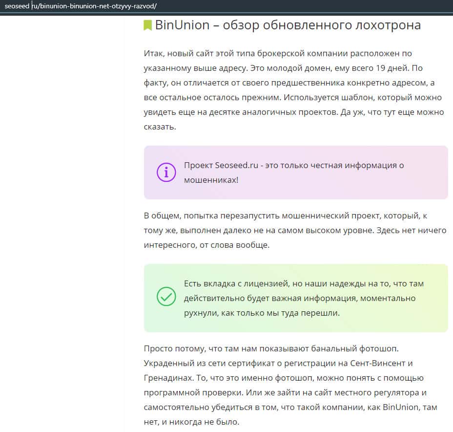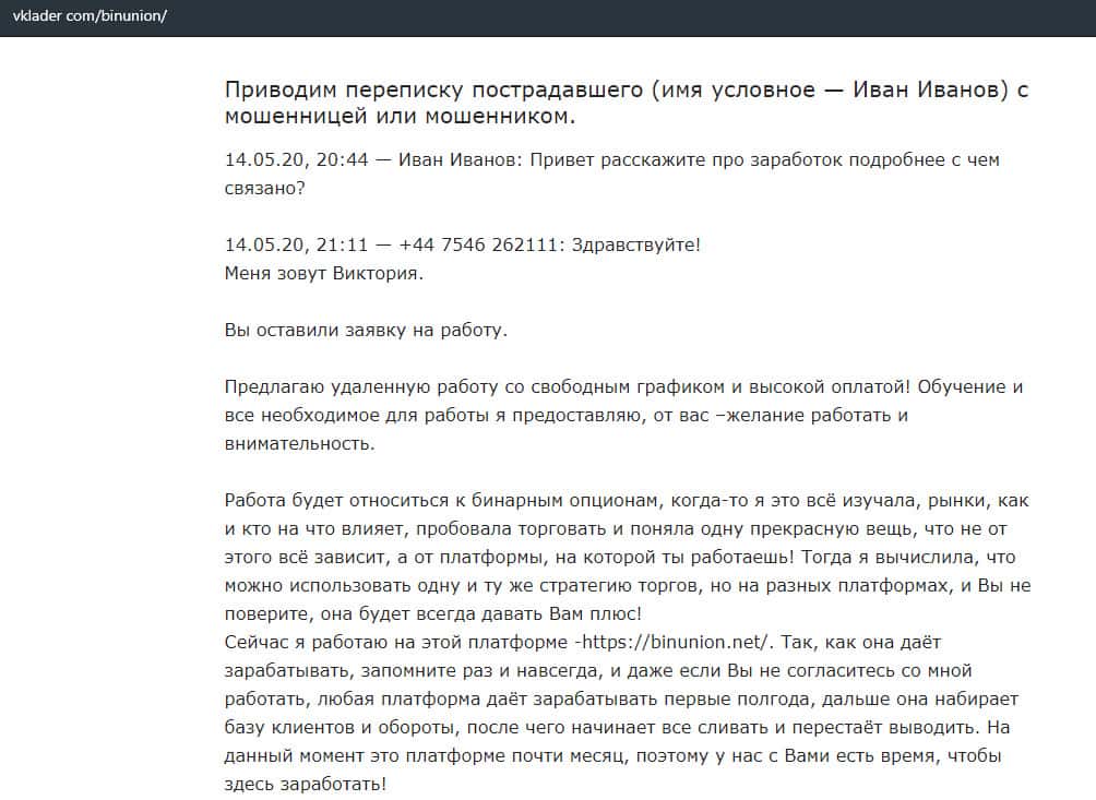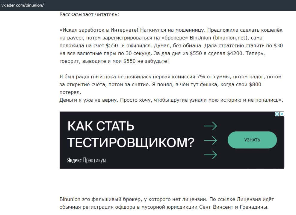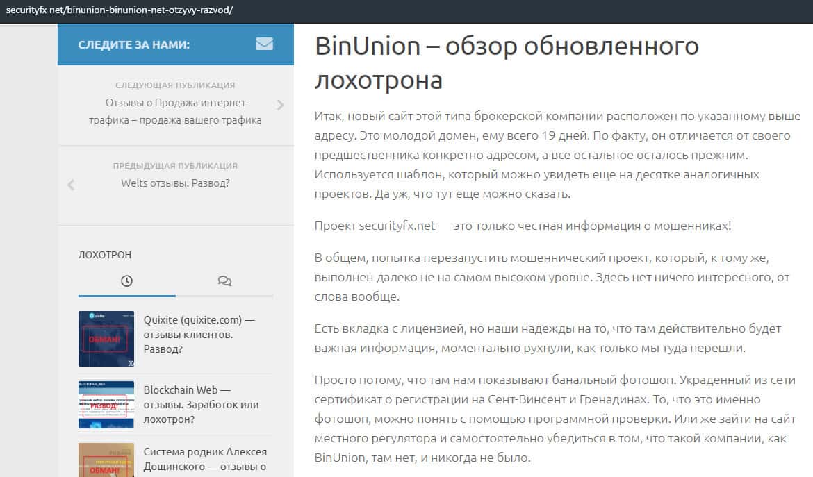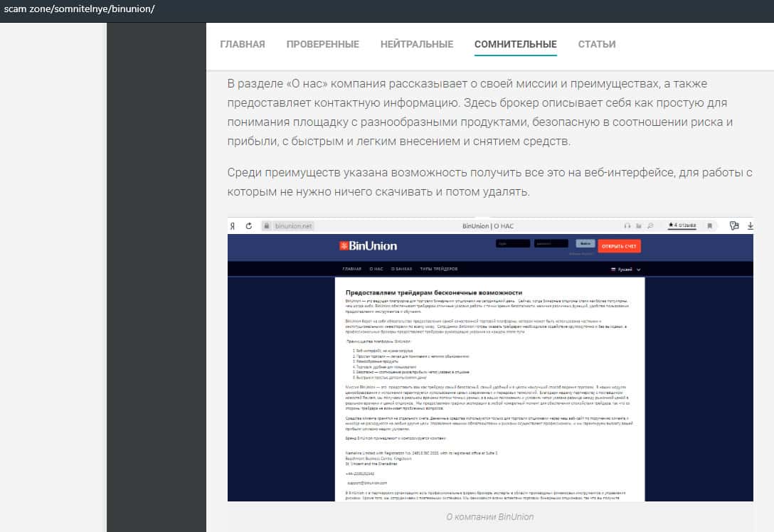 - Очередная статья о фейковом брокере BinUnion Net