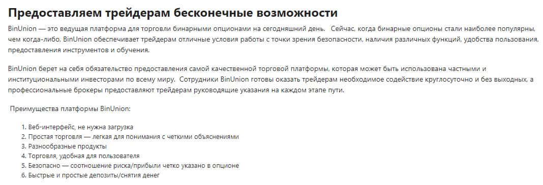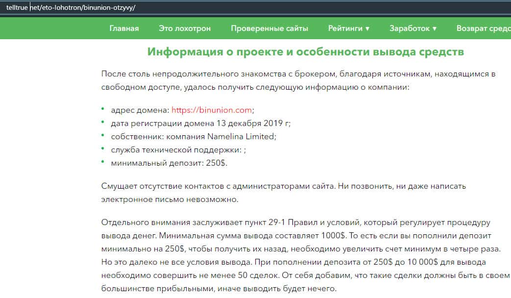- Лохотрон BinUnion Net не предоставляет клиентам ровно ничего