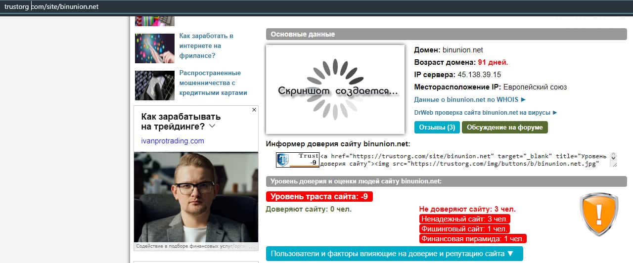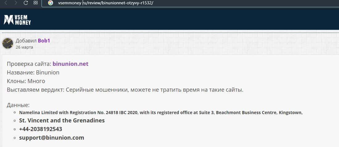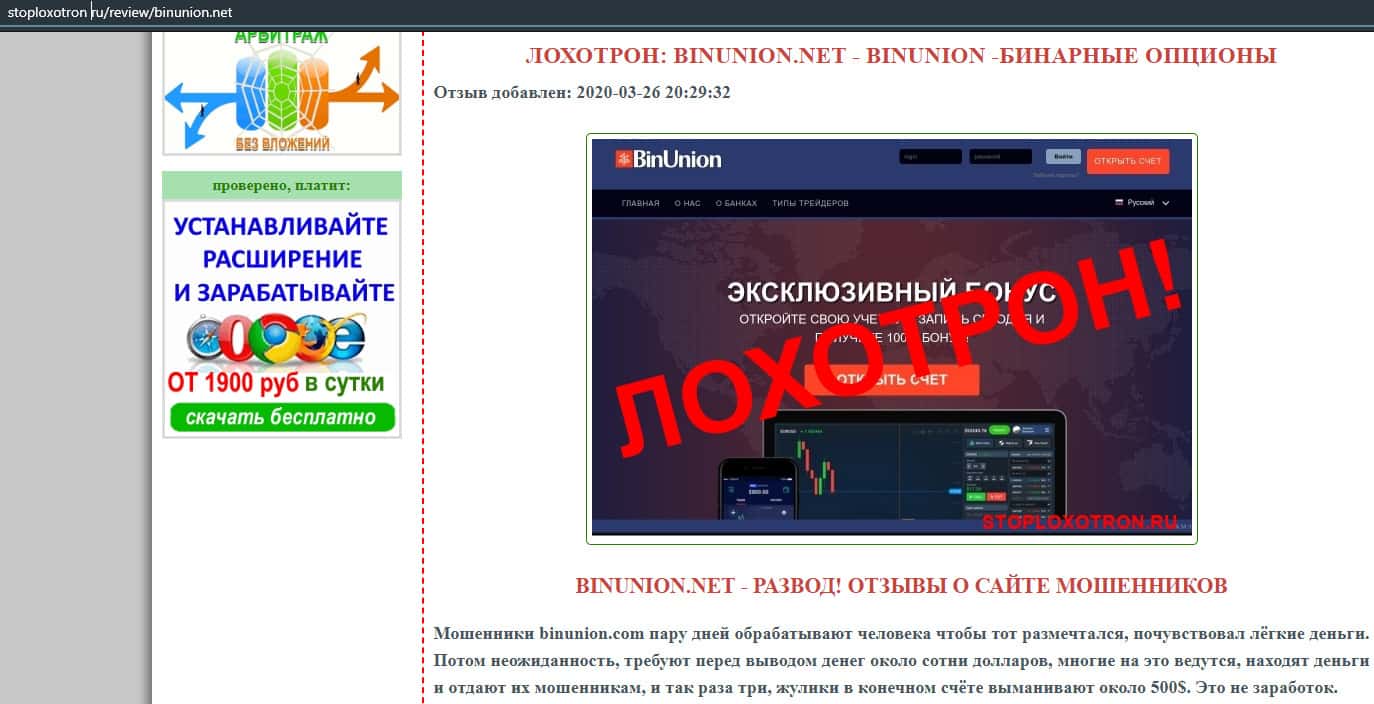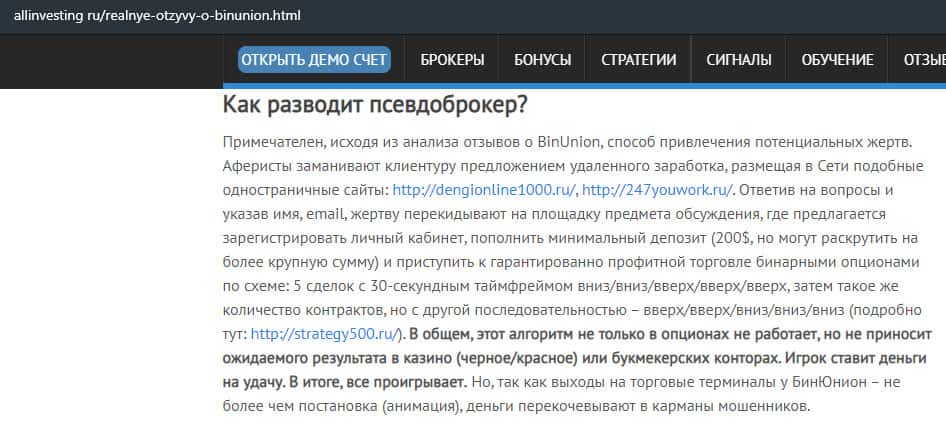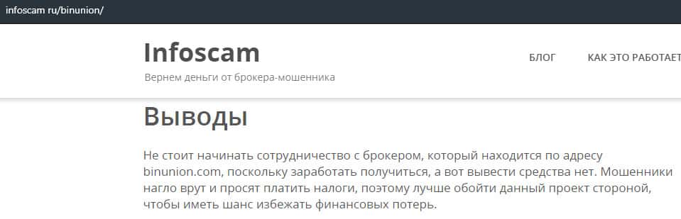 Обзор сайта мошеннической конторы BinUnion Net