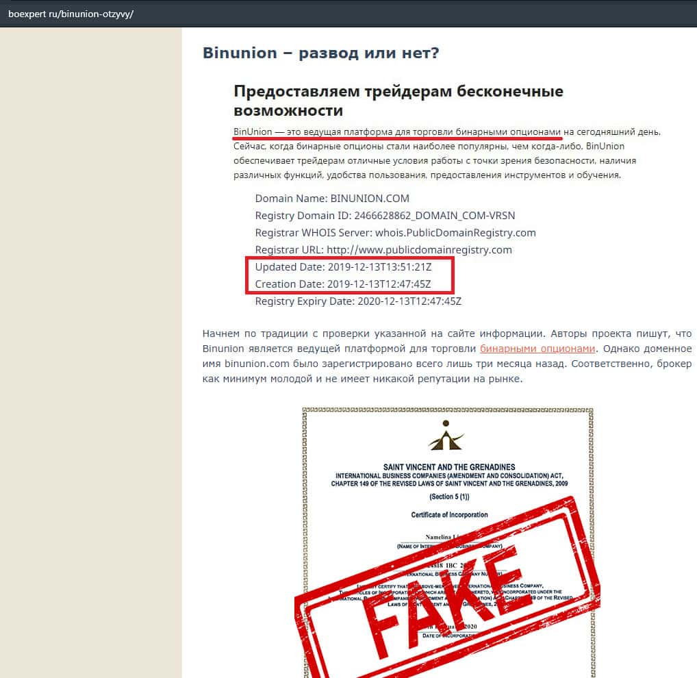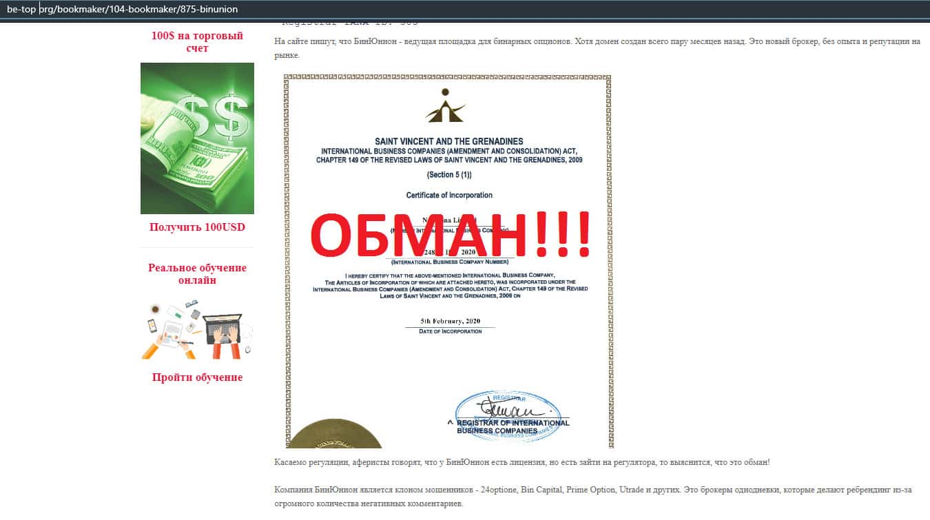 - Информация о фальшивом бинарном брокере BinUnion Net