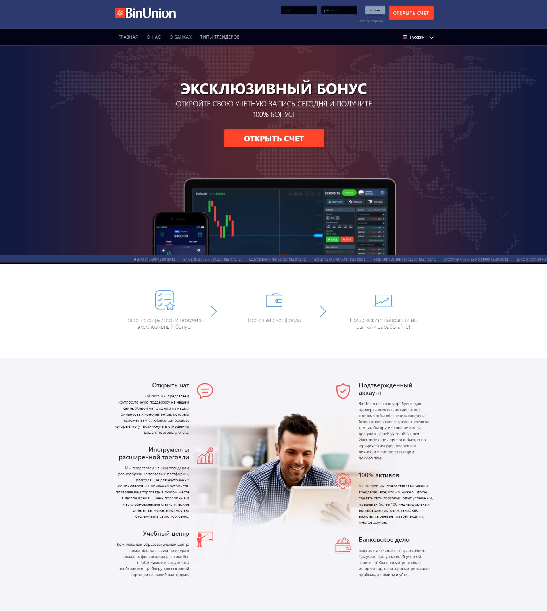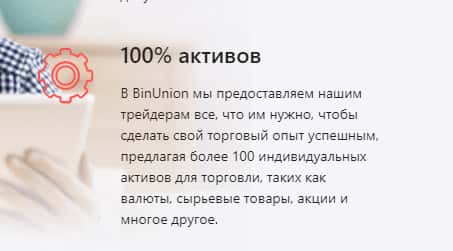 Как показывает практика, торговый опыт трейдеров успешен не от количества предоставляемых торговых инструментов, а от качества предоставленных услуг, поэтому бред, который пишут о ста процентах активов в контор BinUnion Net остается все тем же бредом. Не верьте ни единому слову аферистов.
