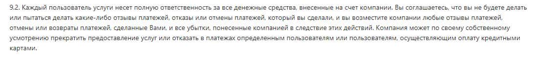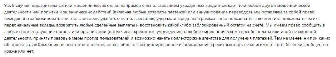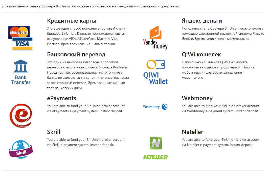 Ниже представлена информация в виде внутреннего документа, который контора BinUnion Net показала на своем официальном сайте. Клиент имеет право пополнять счет любым удобным для него способом, а вот по поводу вывода средств могут возникнуть большие проблемы - деньги никто не вернет.