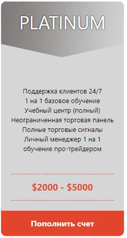 Ну и напоследок счет Platinum, который имеет множество привилегий, ну по крайней мере так пытается предоставить лохотрон Бин Юнион. Полные торговые сигналы, личный менеджер - только усугубят ситуацию, да еще и нужно отвалить от 2000 до 5000 долларов. Так что лучше с этой шарагой не возиться.