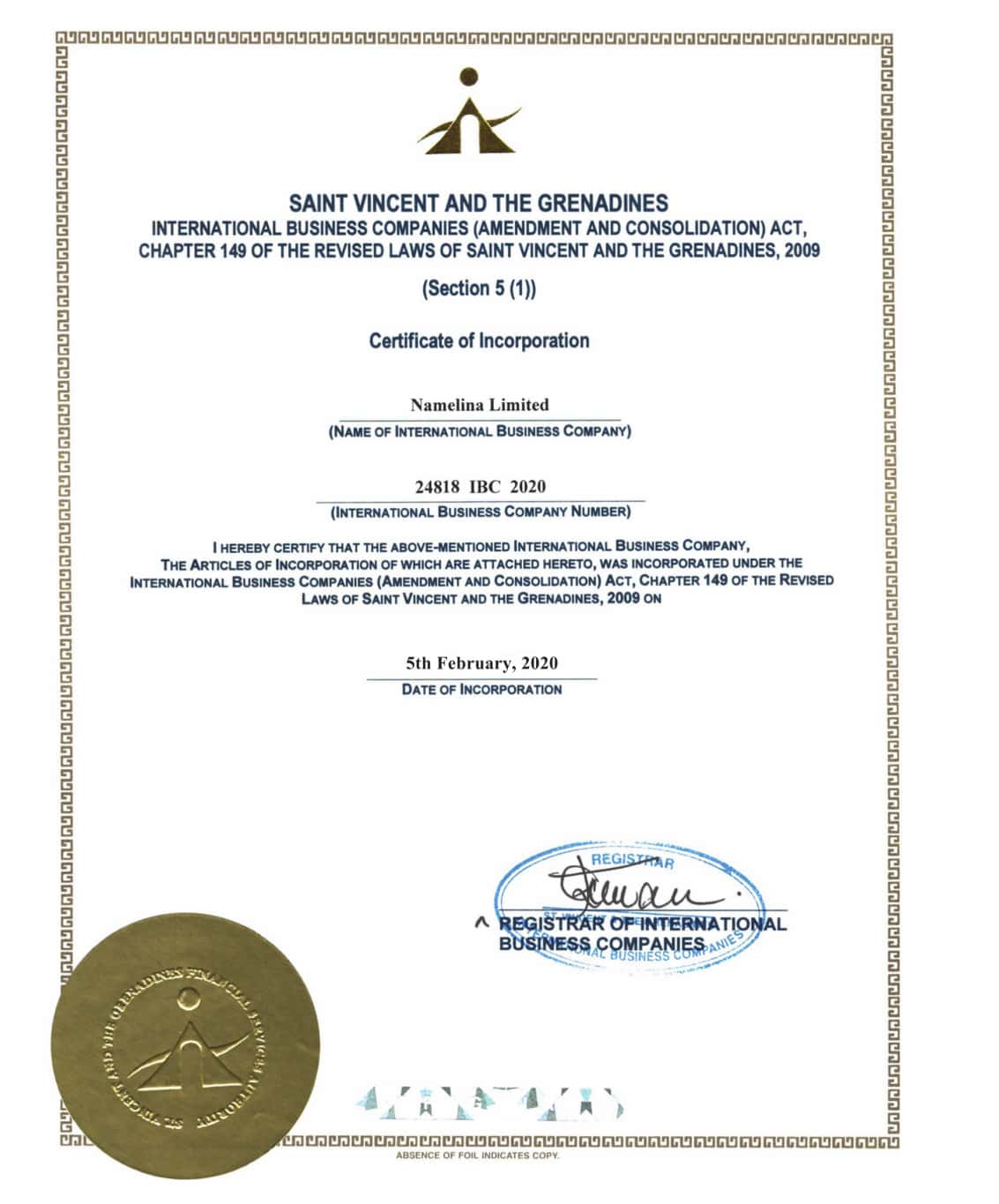 - адрес лохотрона - Namelina Limited with Registration No. 24818 IBC 2020, with its registered office at Suite 3, Beachmont Business Centre, Kingstown, St. Vincent and the Grenadines;