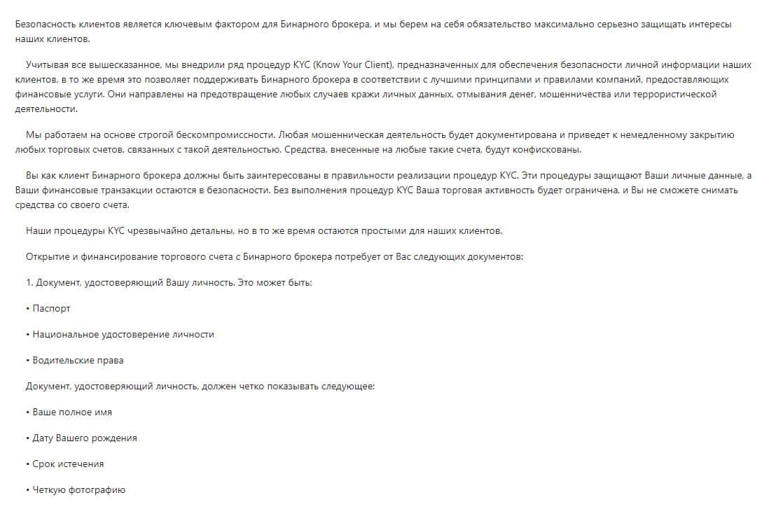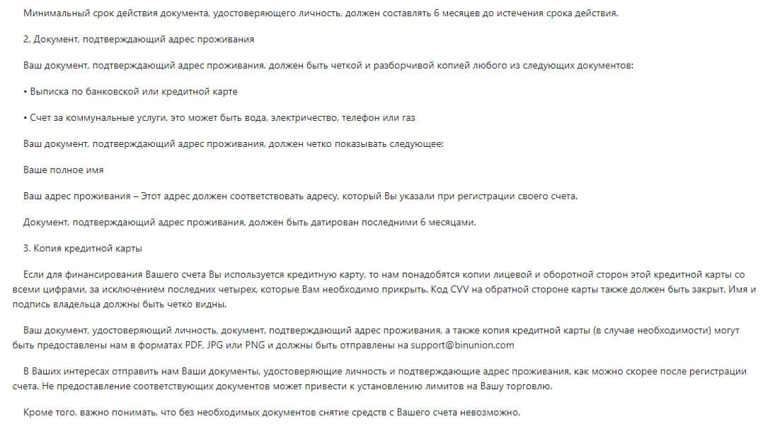Политика Знай своего клиента в конторе BinUnion Net
