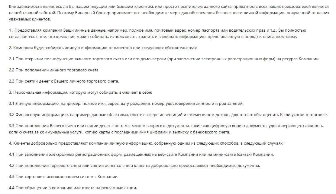 В четвертой части данной политики конфиденциальности шарлатанов BinUnion Net указано, что все это делается исключительно для улучшения качества обслуживания, а соответственно каждый клиент должен еще сказать спасибо. Это далеко неправда, потому что у лохотрона есть лазейка использовать ваши данные на свое усмотрение.