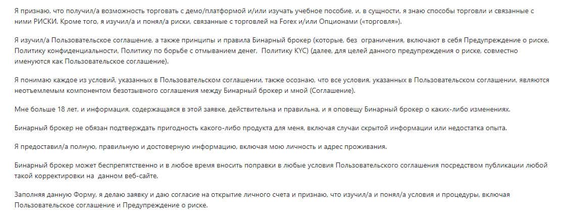 Клиентское соглашение шарлатанской организации BinUnion Net