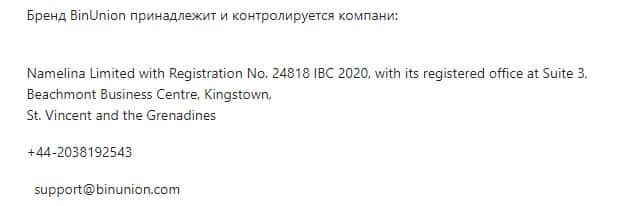 - электронная почта support@binunion com